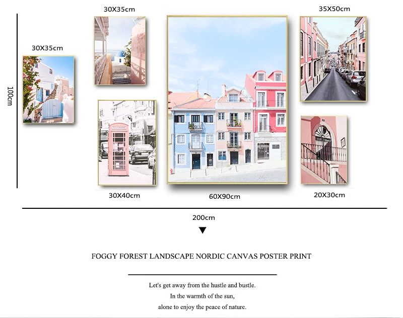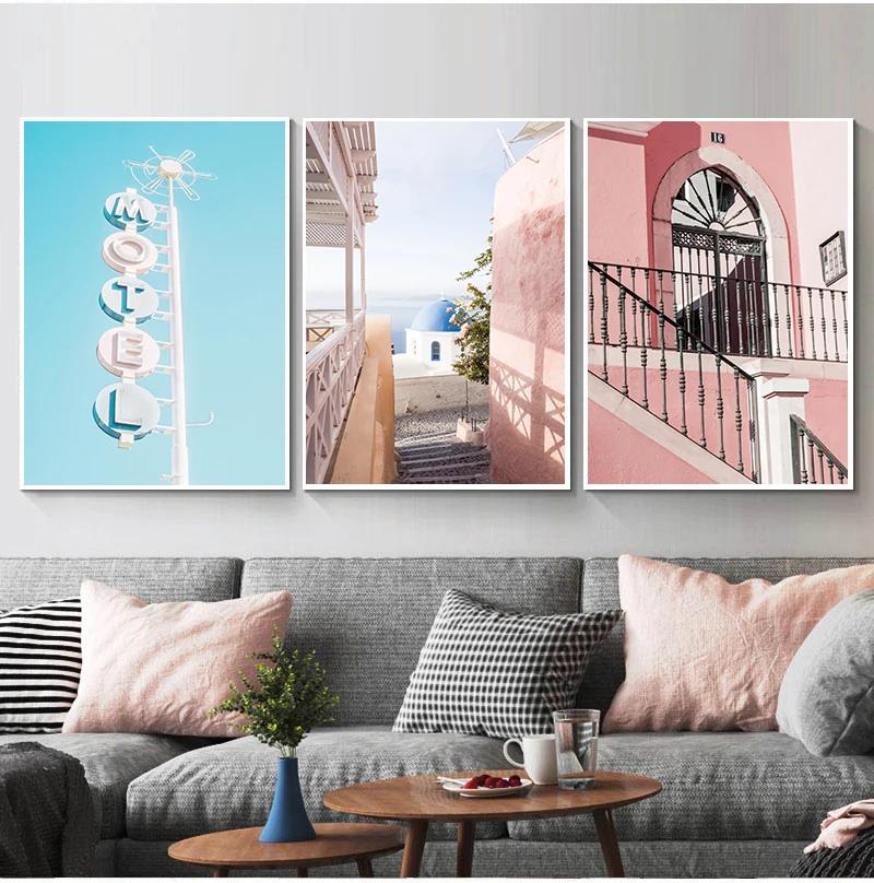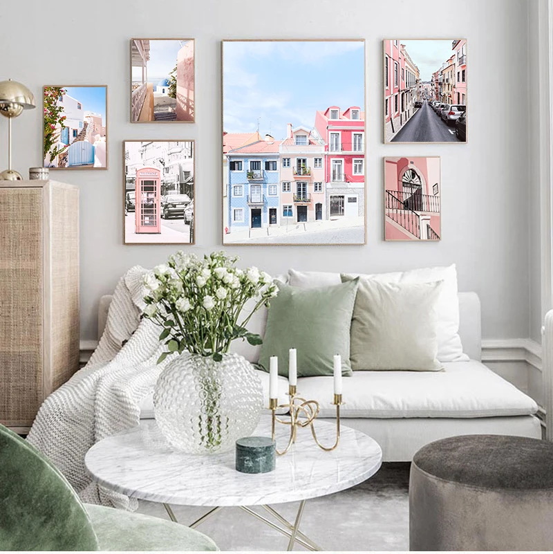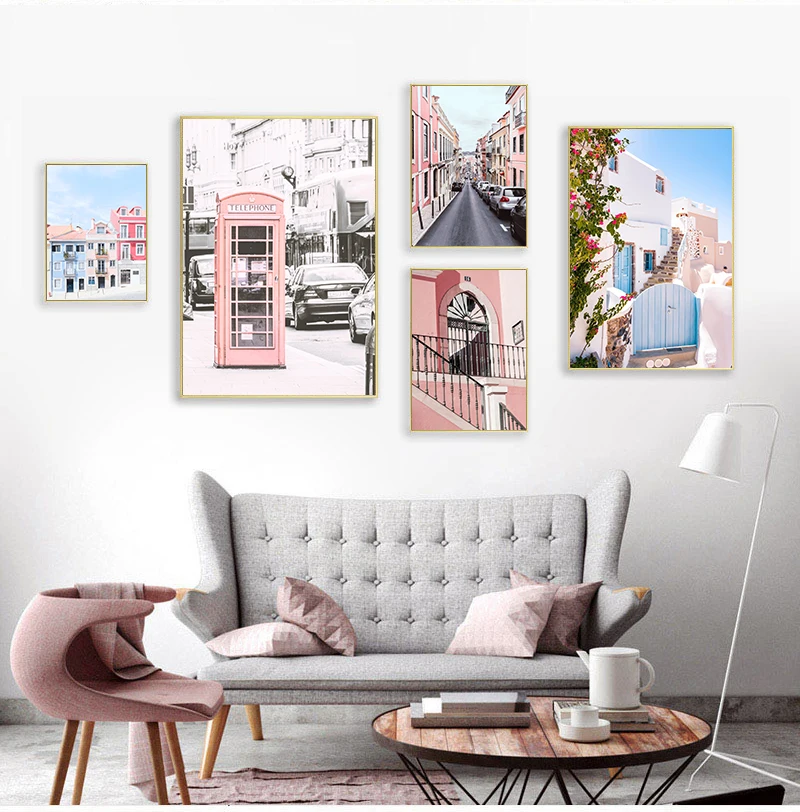 Автомобиль океан Розовый телефонная будка маленький город настенное Искусство Холст Живопись скандинавские s и принты настенные картины для гостиной Декор