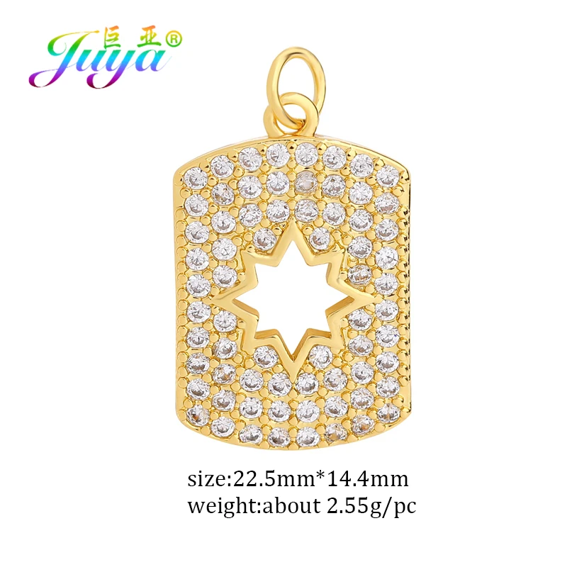 Juya ручная работа Золотая собака тег значок Луна Звезда Подвески со звездой Давида для рукоделия браслет со значком ожерелье шарм, изготовление украшений принадлежности
