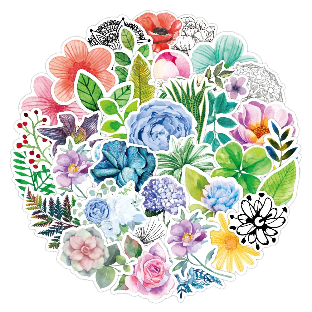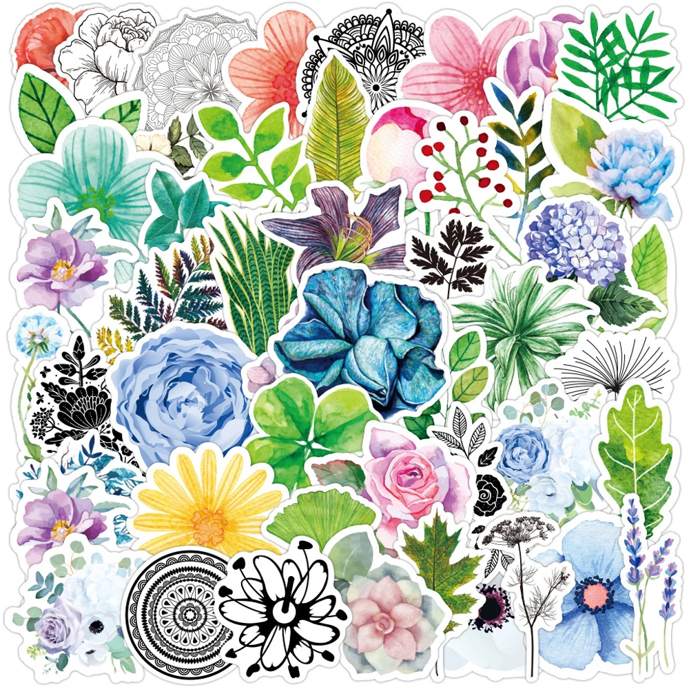 50 шт., водостойкая наклейка VSCO с цветущими цветами для бутылки с...