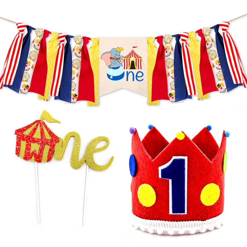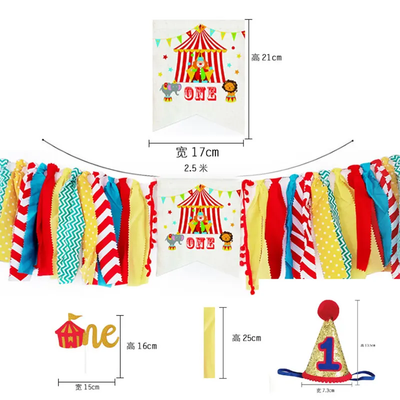 Набор украшений для цирковечерние, карнавал, детский обеденный стул, баннер с кисточками, торт, Топпер, первый день рождения, шапка для детей, первый день рождения