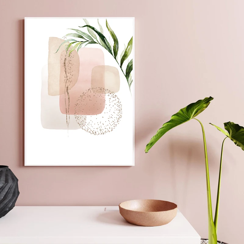 Розовые румяна и золото Пастельная абстрактная Акварельная живопись...