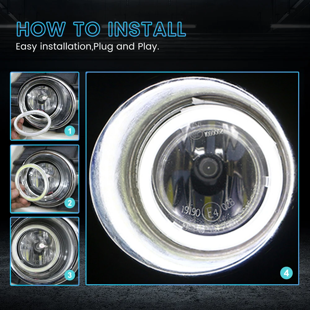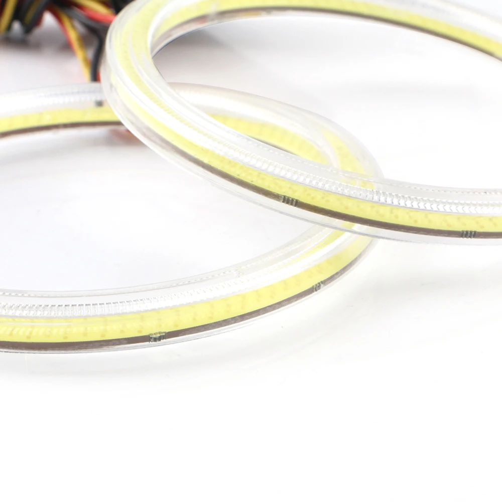 2 шт., автомобильный ангельские глазки 60 мм 70 мм 80 мм 90 мм 100 мм, Авто галогенные кольца, COB светильник s, 12 В, головной светильник, белый + желтый светодиодный светильник для мотоцикла