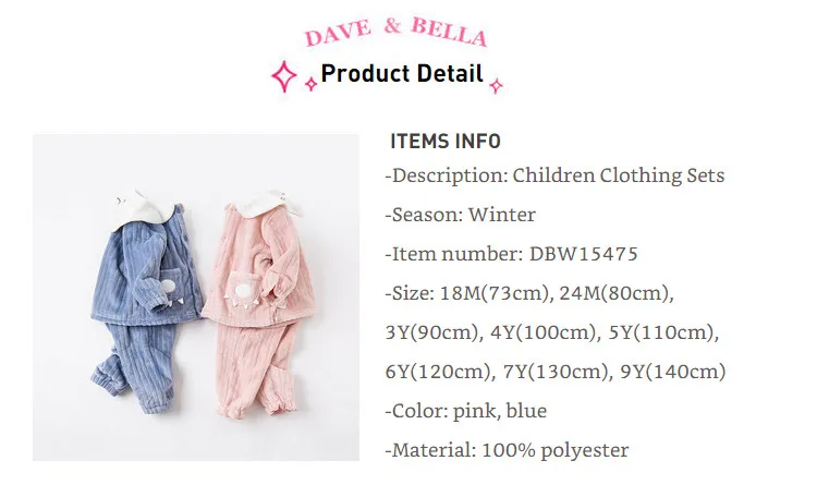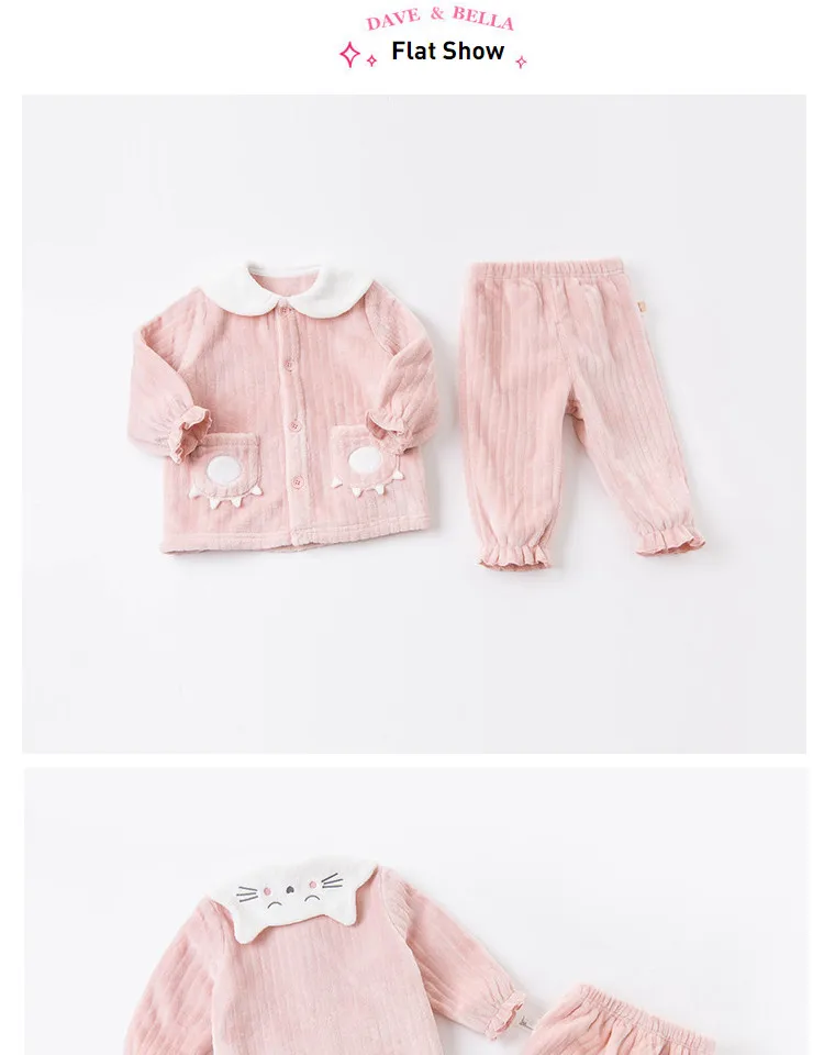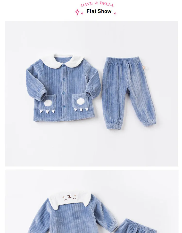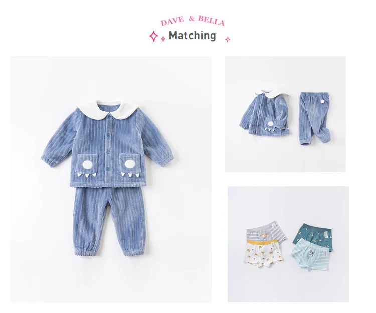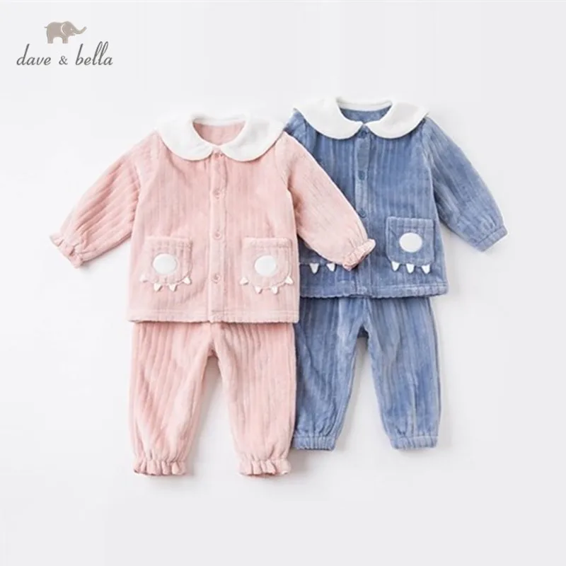 DBW15475 dave bellaзимняя Модная Детская Пижама унисекс с мультяшным принтом нижнее белье для новорожденных повседневная одежда для сна комплект из 2 предметов