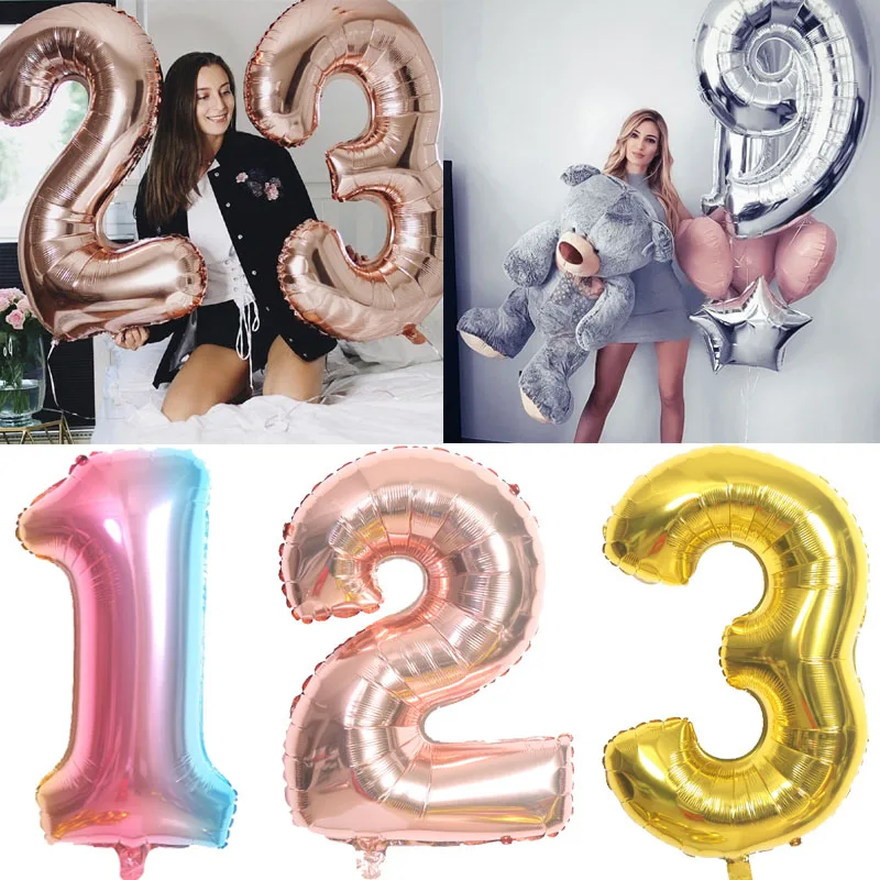 Воздушные шары из фольги, 163240 дюймов, цифры радужные, серебряные, 0 9