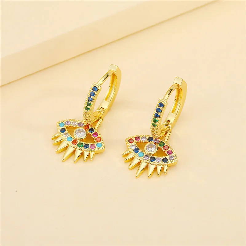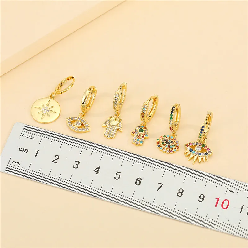 1 пара, циркониевые турецкие серьги Fatima для женщин, винтажные милые радужные кристаллы, сглаза, круглые маленькие серьги-гвоздики, ювелирное изделие, подарок