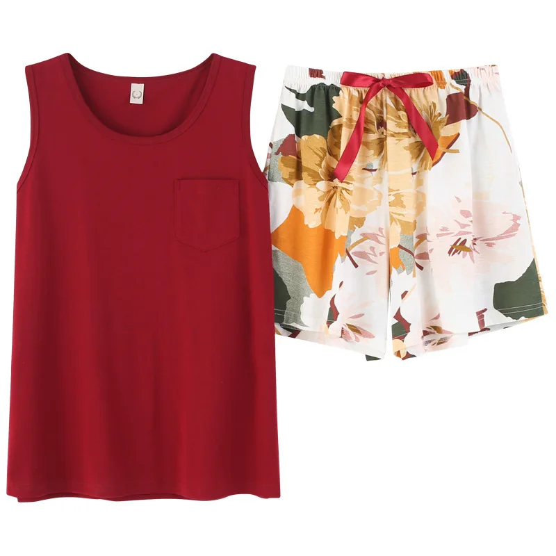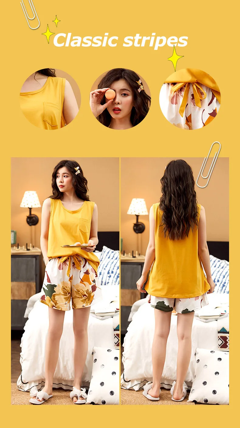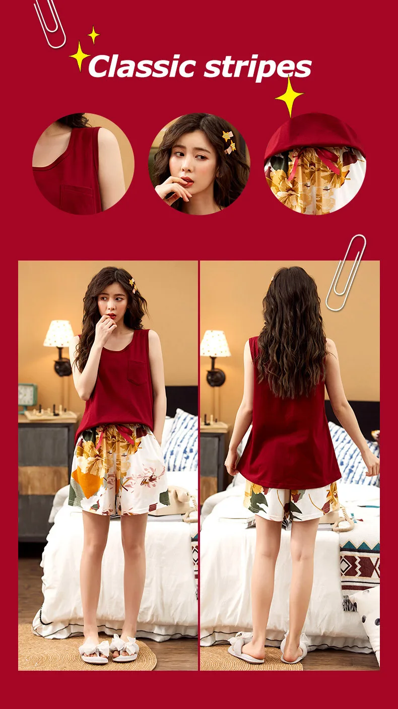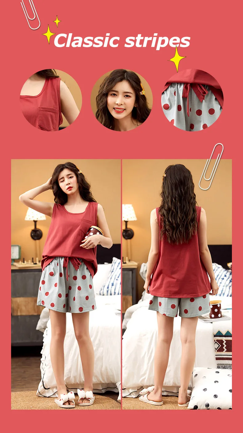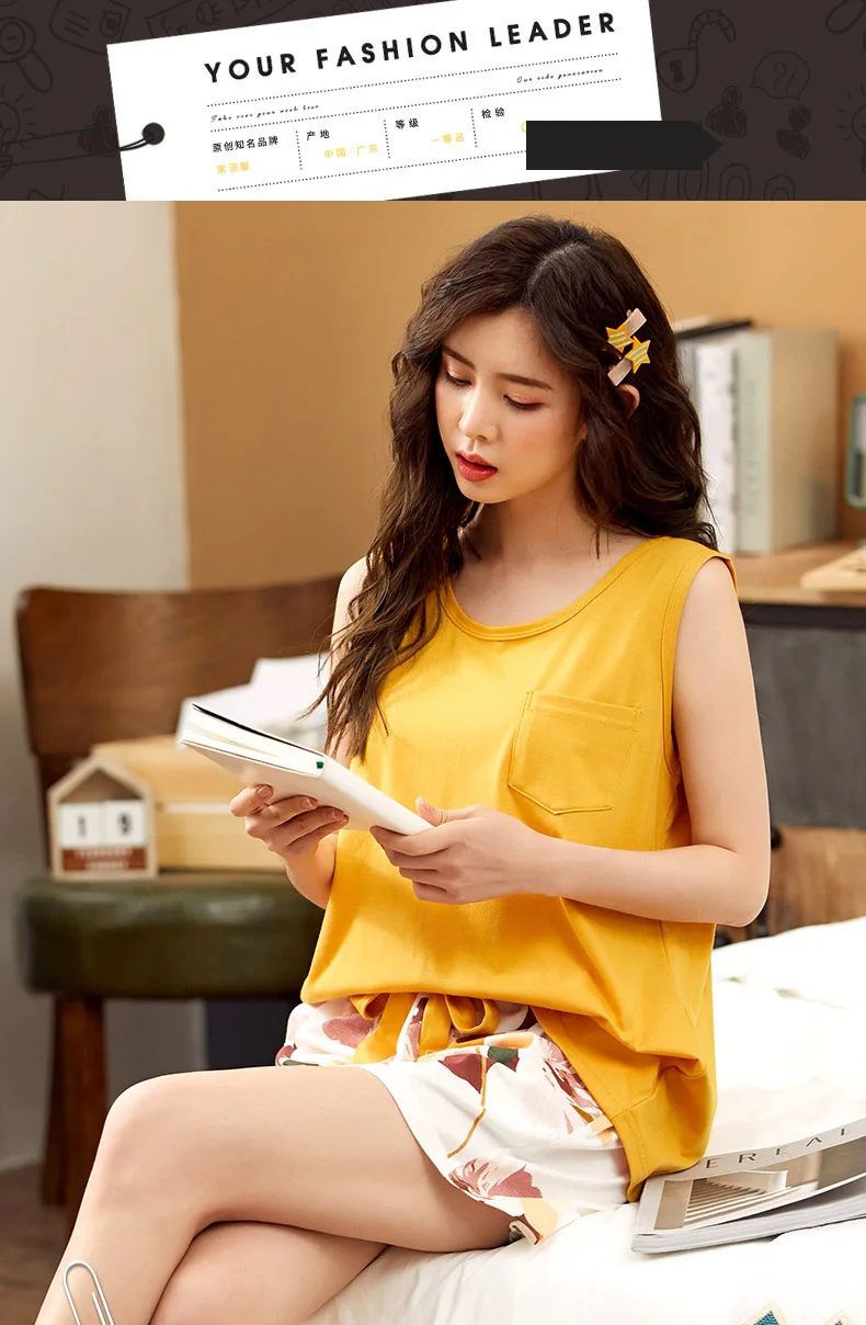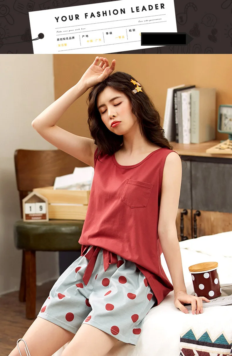 Norns жилет пижамы женские полиэстер хлопок без рукавов шорты из двух частей лето сплошной цвет Печать Тонкий домашний сервис большой размер