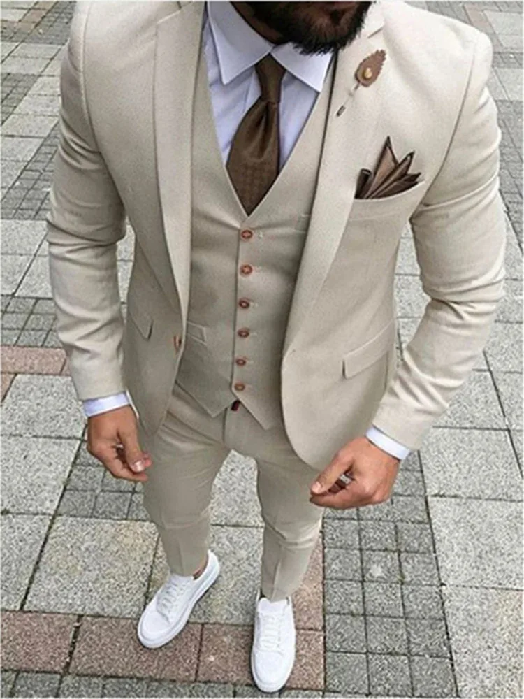 Новый модный красивый мужской костюм цвета слоновой кости костюм для жениха Свадебные костюмы для лучших мужчин приталенные смокинги для жениха для мужчин (пиджак + жилет + брюки)