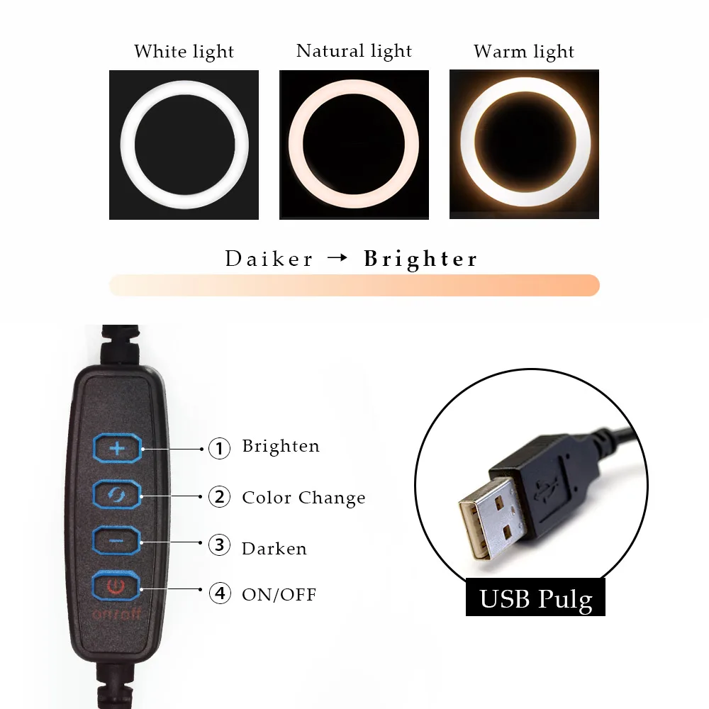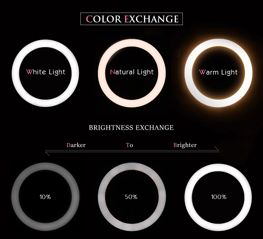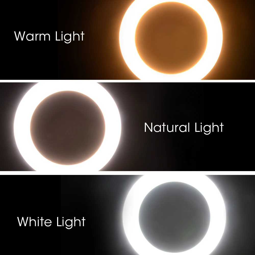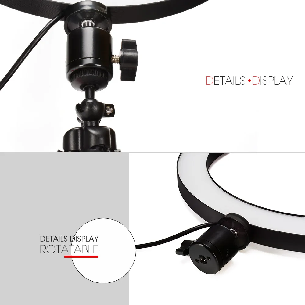 Кольцевой светильник:Вы сможете сделать видео ночью или делать отличные селфи фото в темных местах с этого кольца изготовлены из светильник. Это профессиональный инструмент для создания видео в реальном времени/запись со смартфоном или компьютеров.