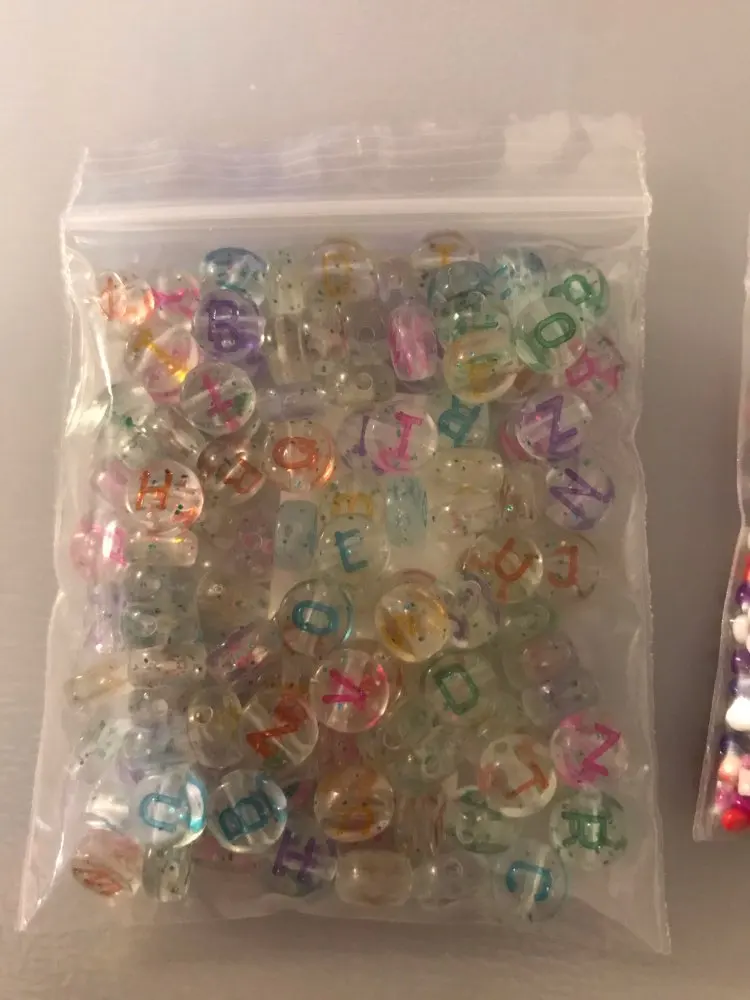 Хорошие, маленькие, аккуратные бусинки) Посылка шла больше месяца. В упаковке я насчитала больше 100 штук, но некоторых букв только по одной штуке.