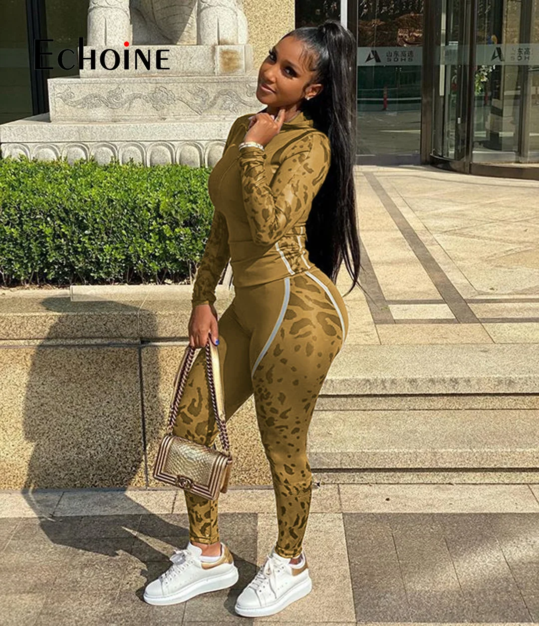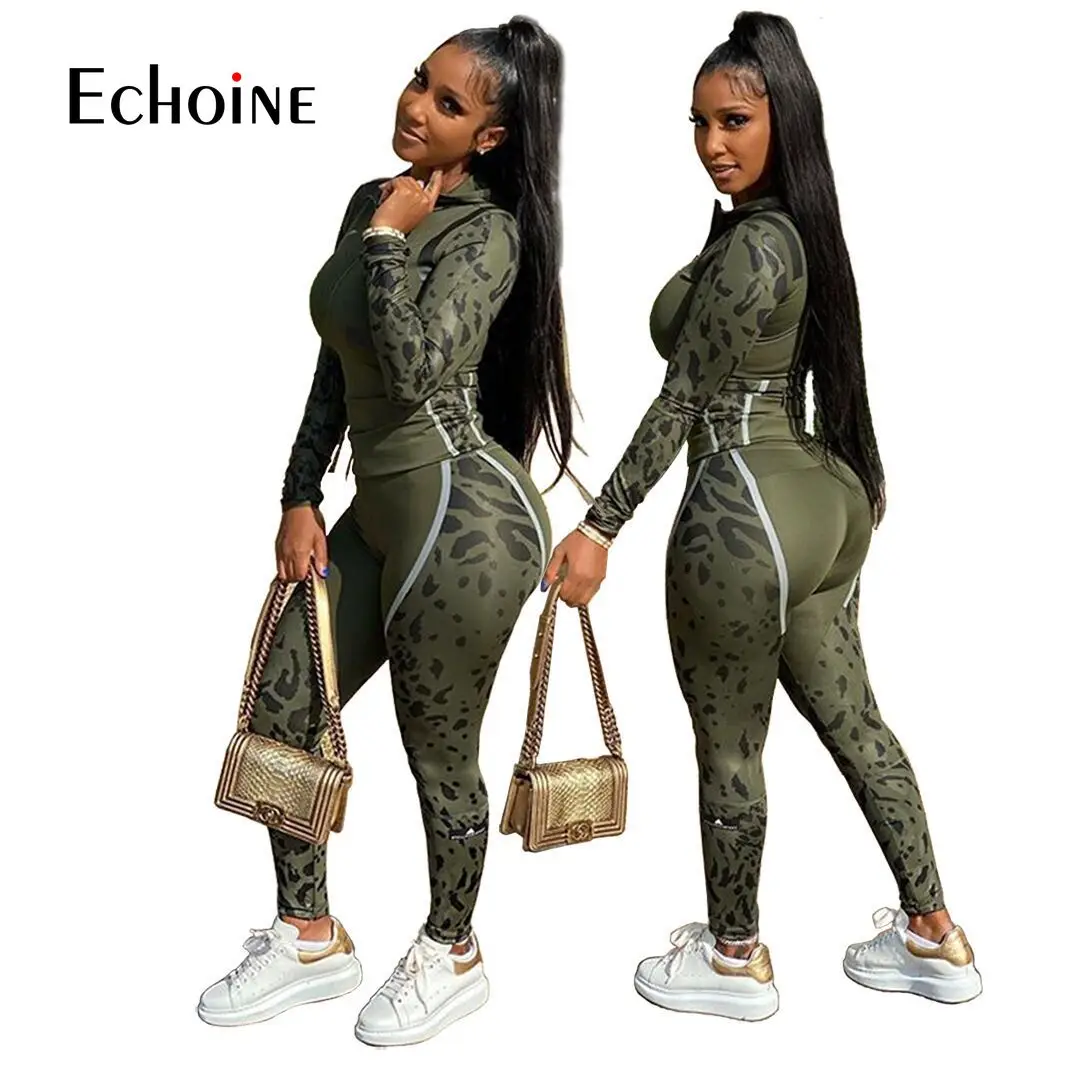 Костюм спортивный женский Камуфляжный из топа с капюшоном и брюк
