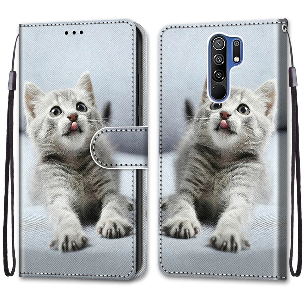 Чехол-книжка для Redmi Note 9T, 9, 9S Pro, 9A, 9C, с подставкой, с изображением кошек, собак, кожаный флип-чехол для телефона