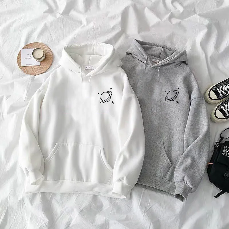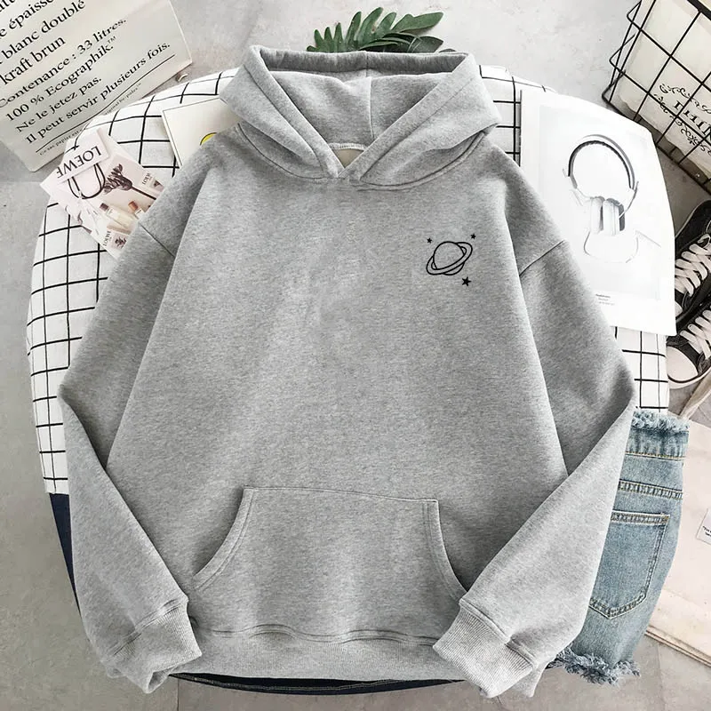 Свитшот женский бархатный с капюшоном, Простой Розовый пуловер с принтом планеты, свободное худи в стиле Харадзюку, теплая уличная одежда с длинным рукавом в стиле панк