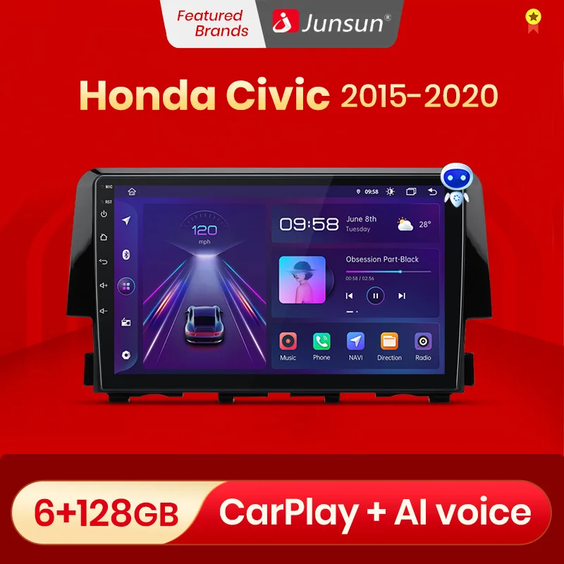 Автомагнитола Junsun V1 для Honda Civic 10 2015-10,0, мультимедийный видеоплеер на Android 2020, DSP, dvd, типоразмер 2 din