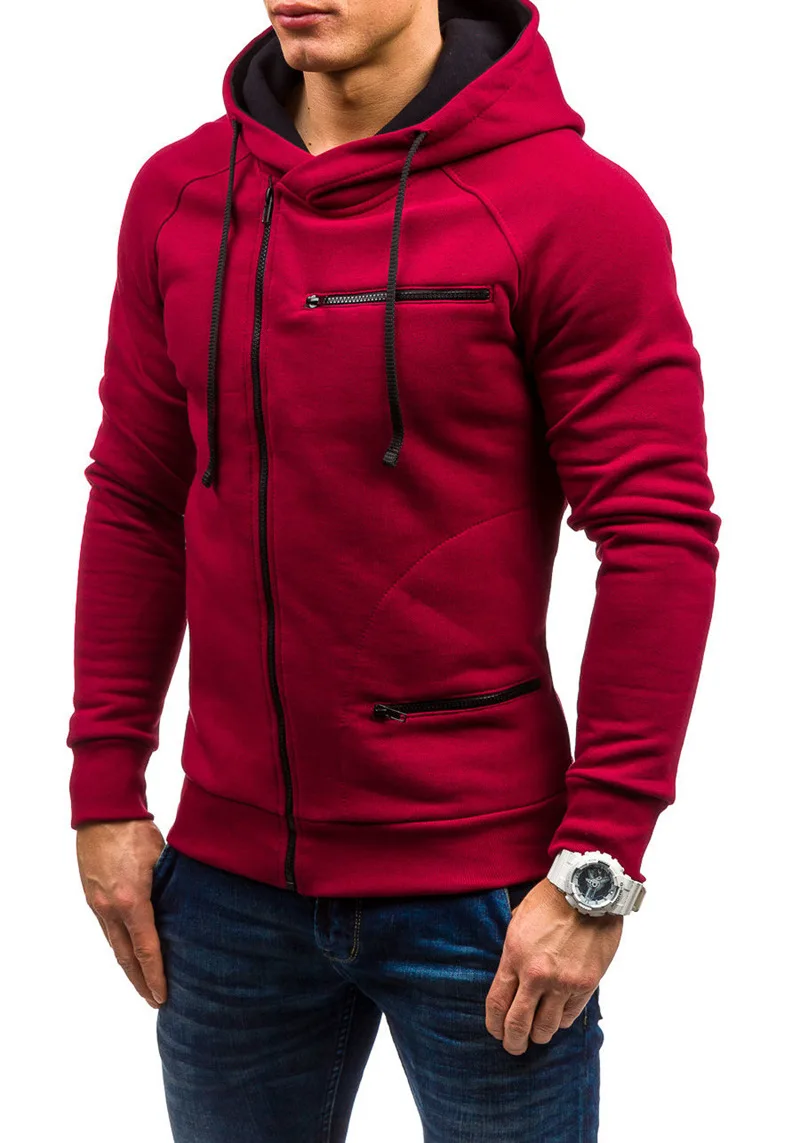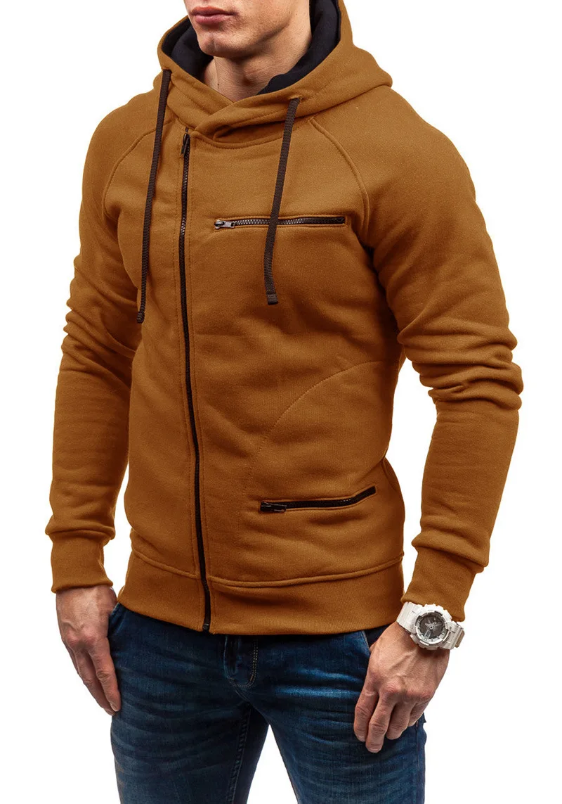 Мужская тонкая толстовка с капюшоном, на молнии, с карманом-кенгуру...