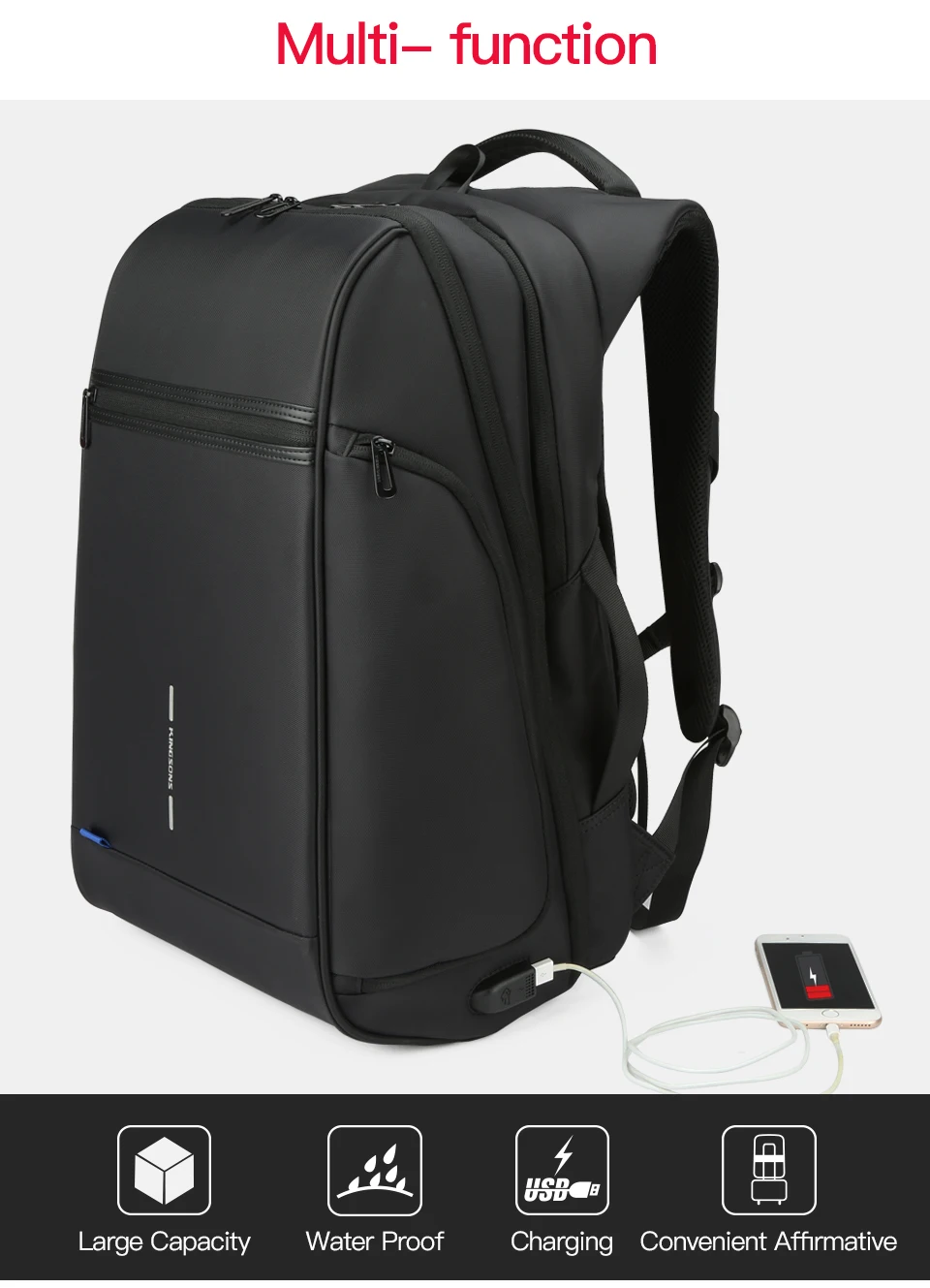 Рюкзак Kingsons для 15-17-дюймового ноутбука с внешней USB-зарядкой, рюкзаки для компьютера 2020, большие водонепроницаемые сумки с защитой от кражи для мужчин и женщин