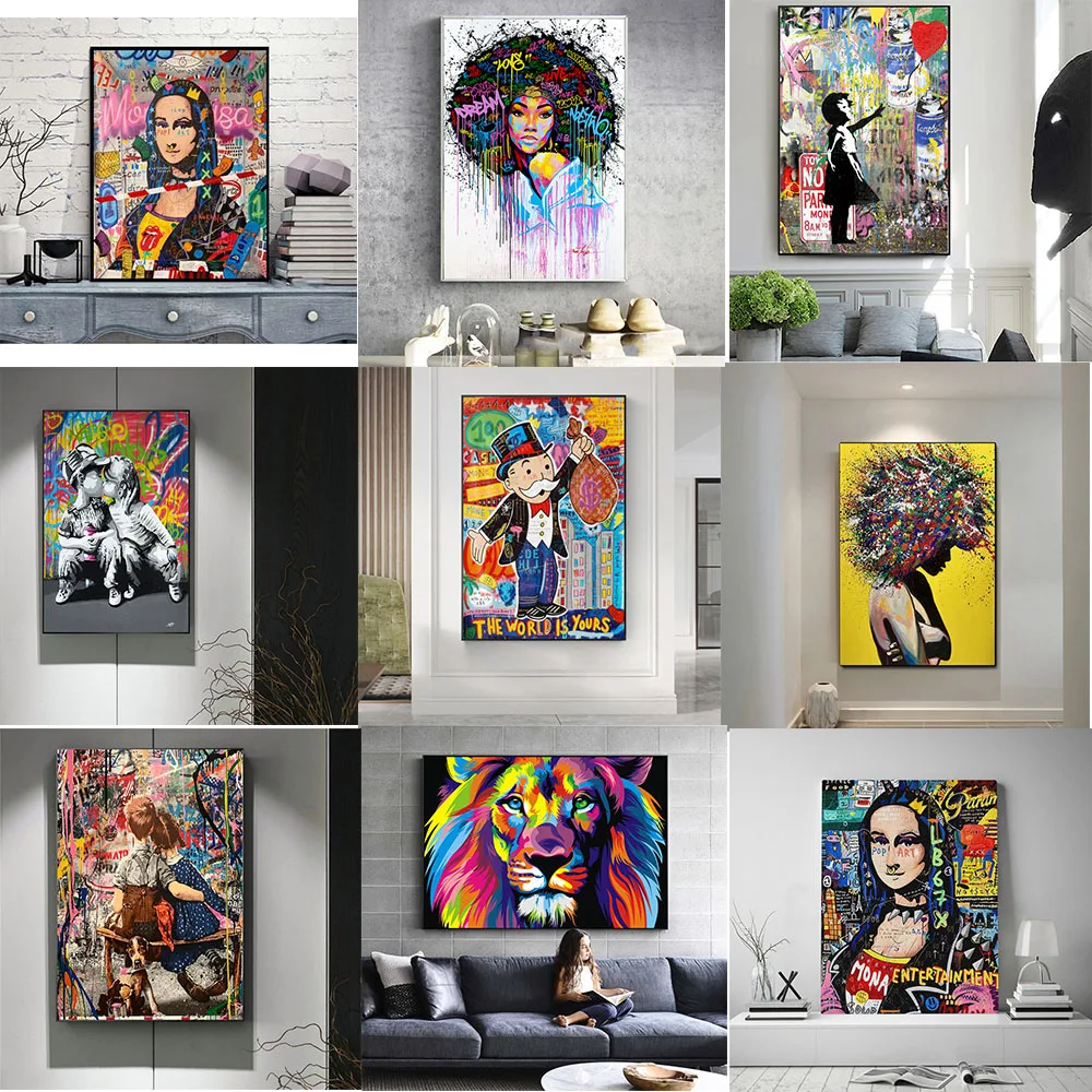 Картина на холсте современный граффити искусство Мона Лиза классическая картина маслом на холсте хороший подарок для друзей Гостиная Спальня Декор