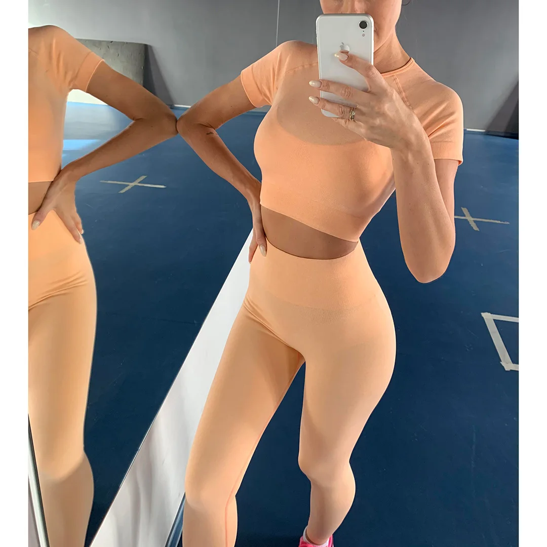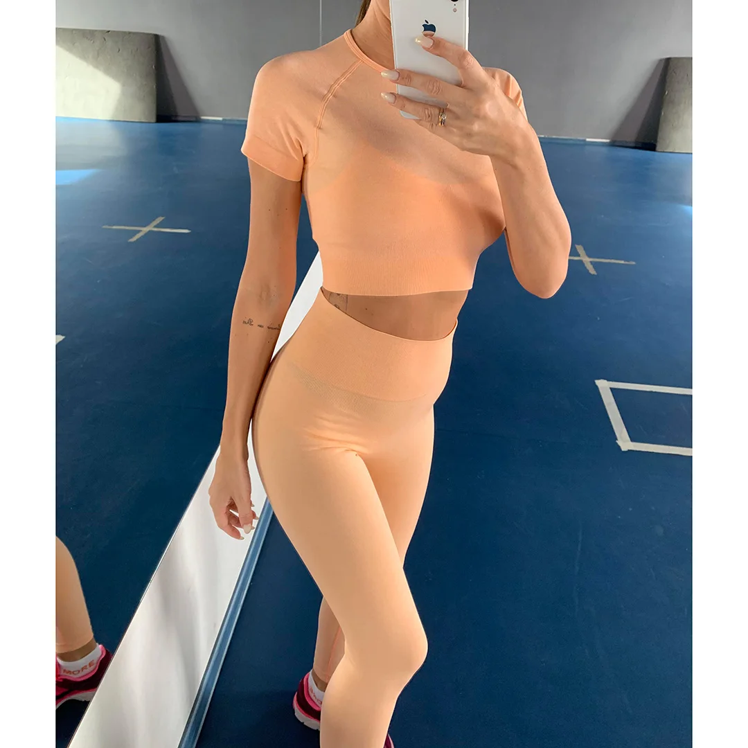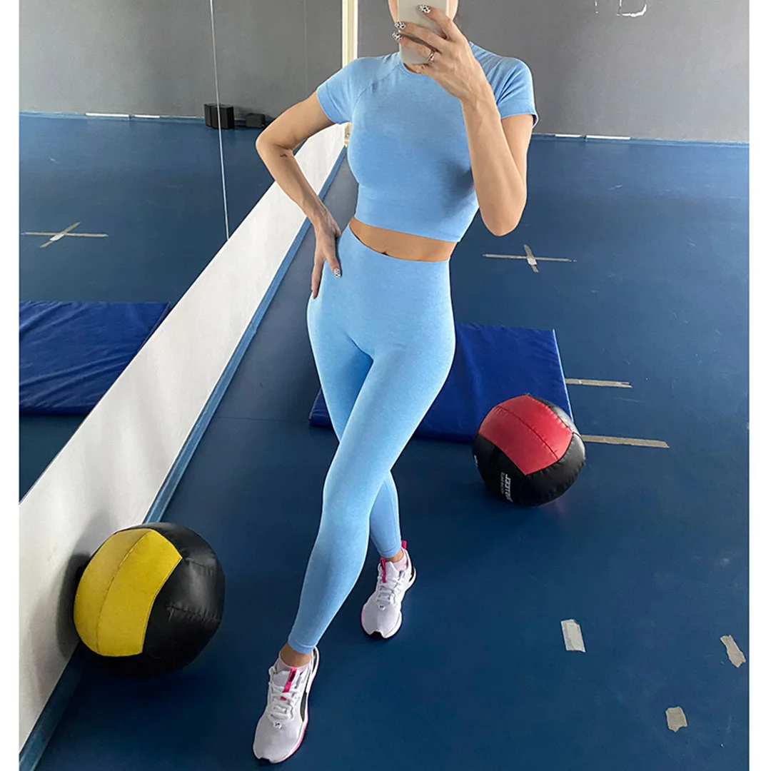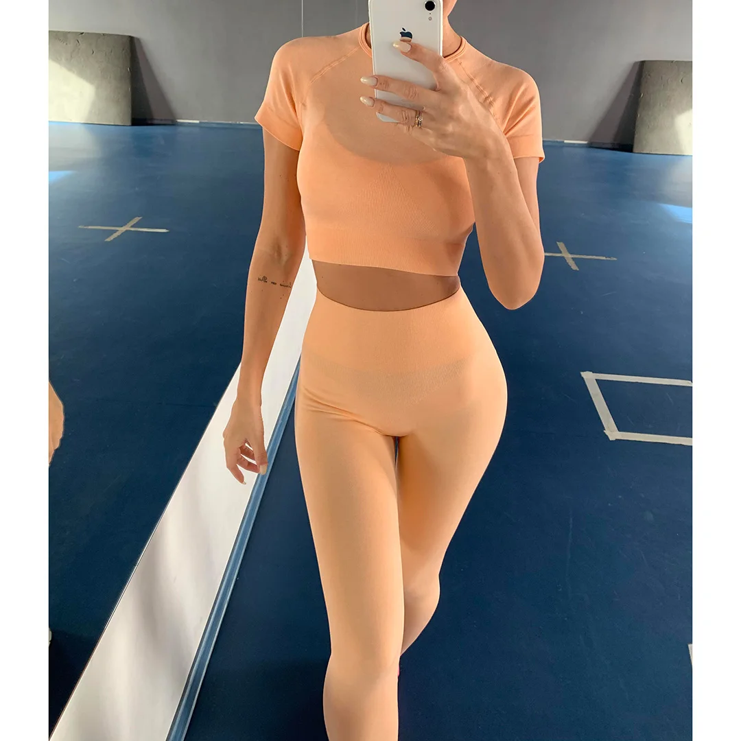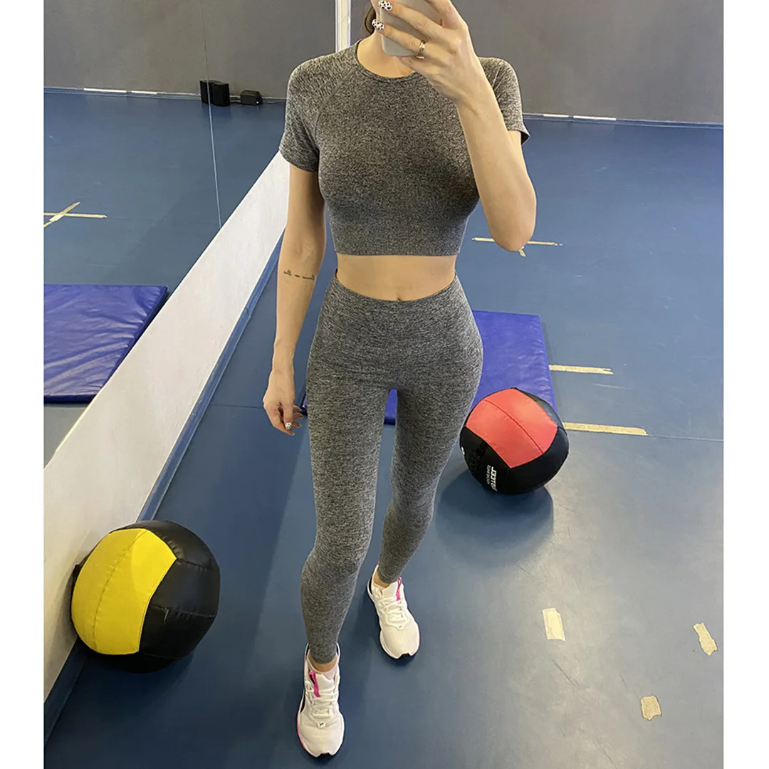 Спортивная одежда, комплект для йоги из 2 предметов, женский костюм для йоги, леггинсы с коротким рукавом и высокой талией, быстросохнущая одежда для йоги, энергетический костюм для фитнеса A012