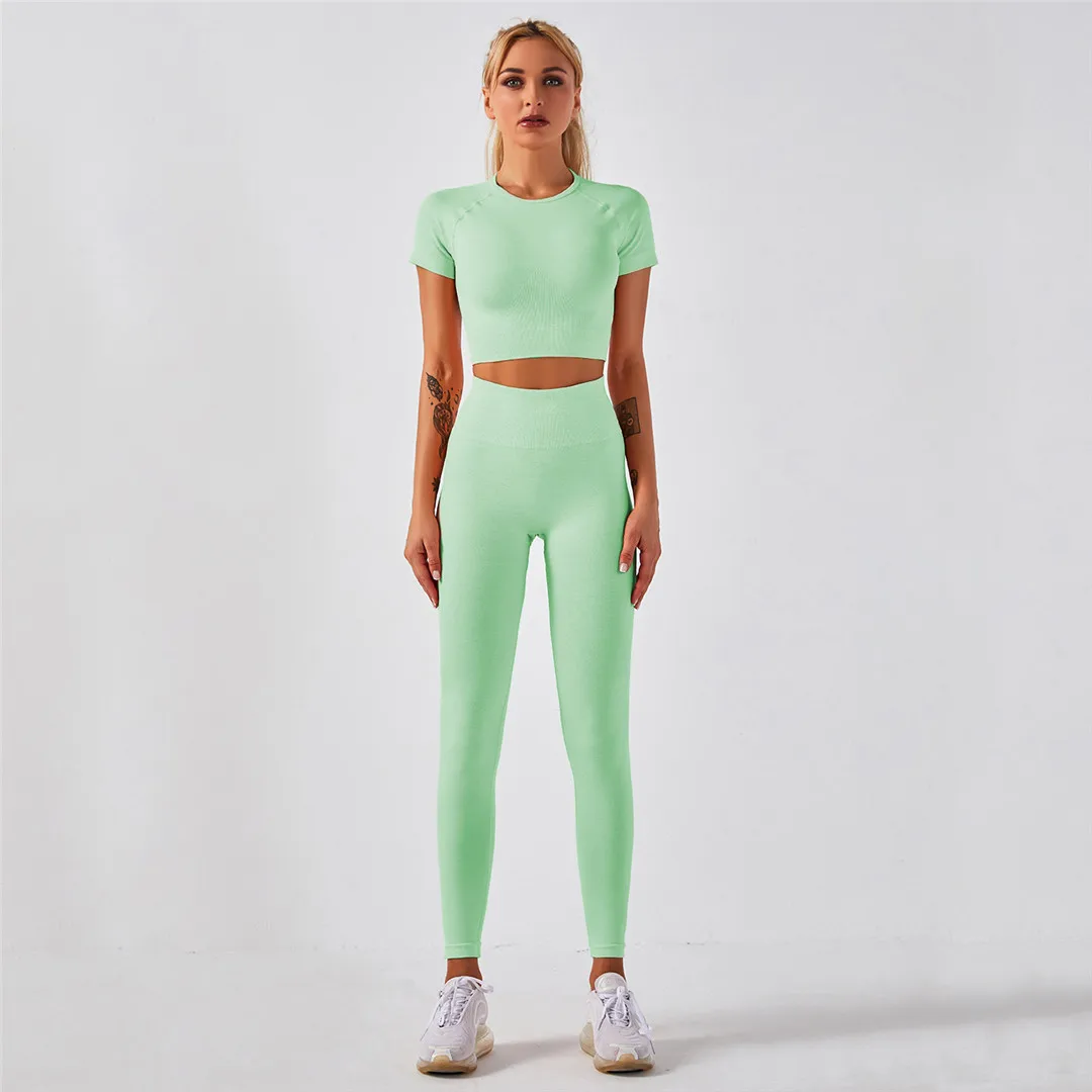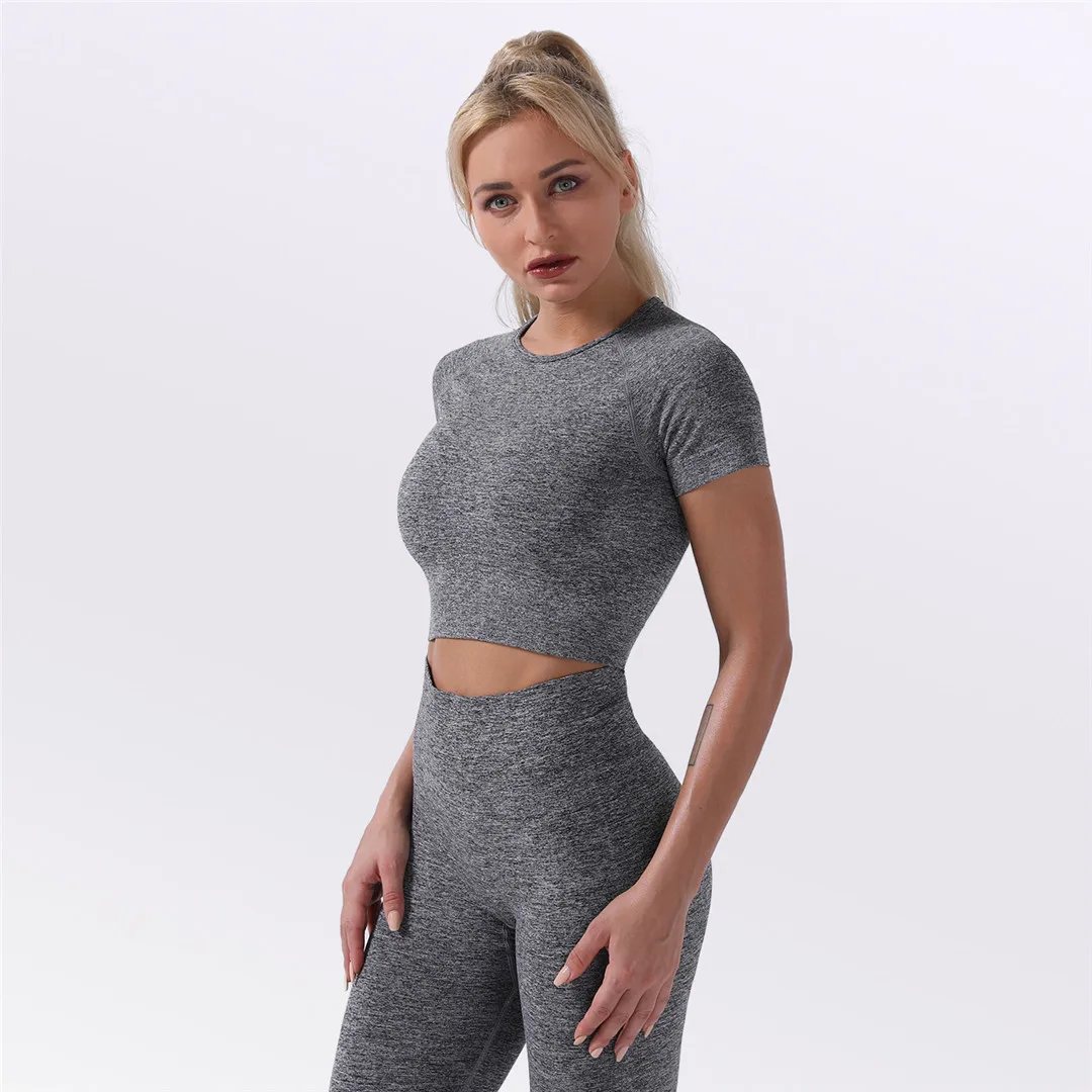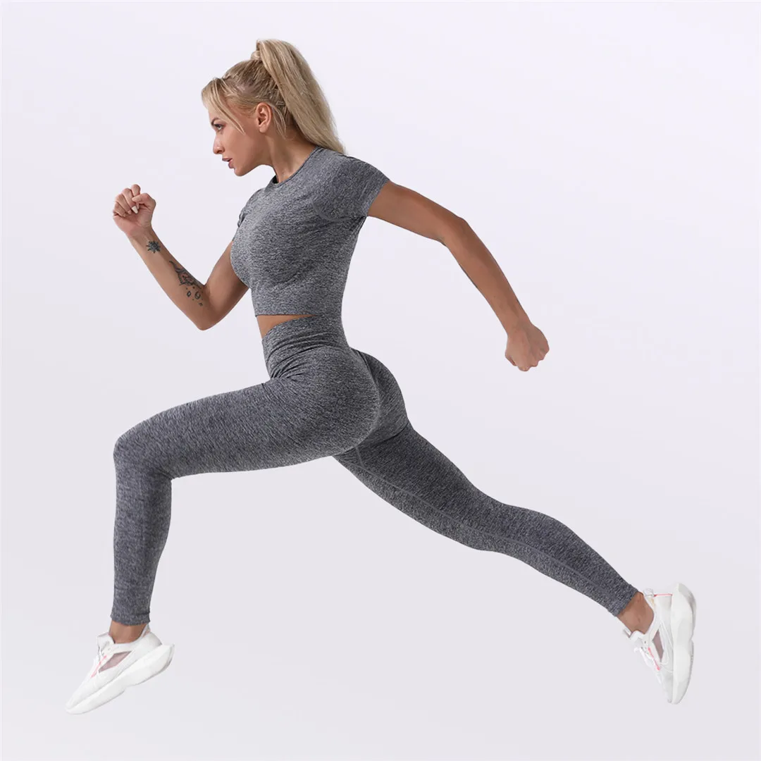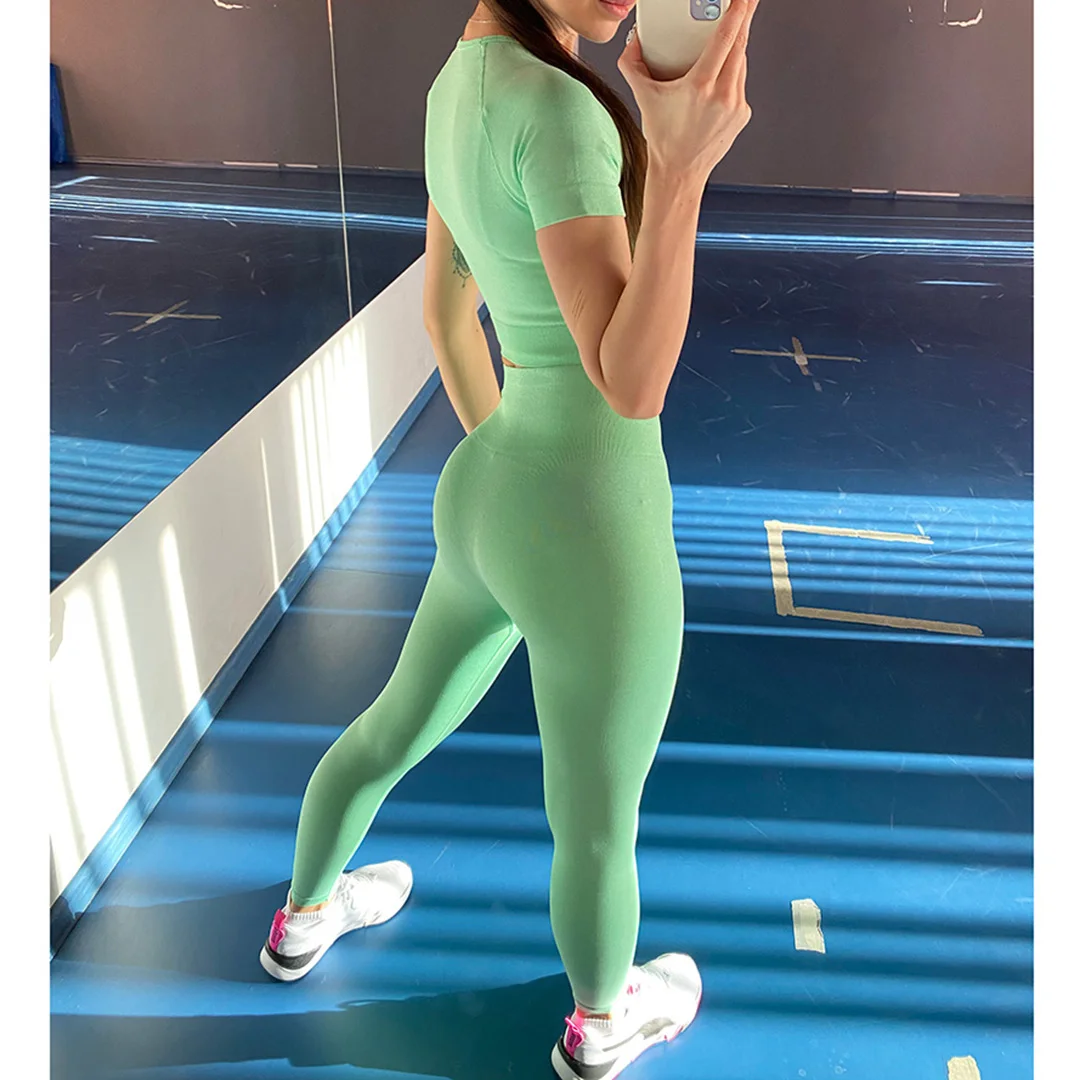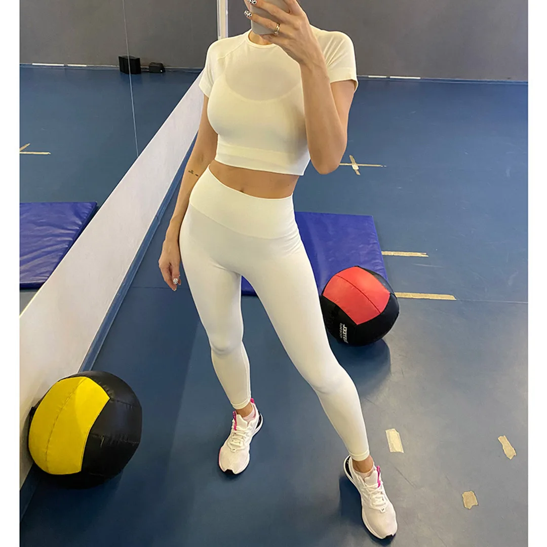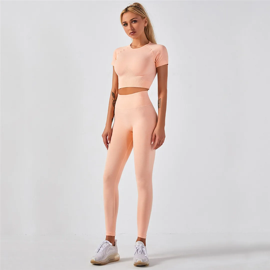 Спортивная одежда, комплект для йоги из 2 предметов, женский костюм для йоги, леггинсы с коротким рукавом и высокой талией, быстросохнущая одежда для йоги, энергетический костюм для фитнеса A012
