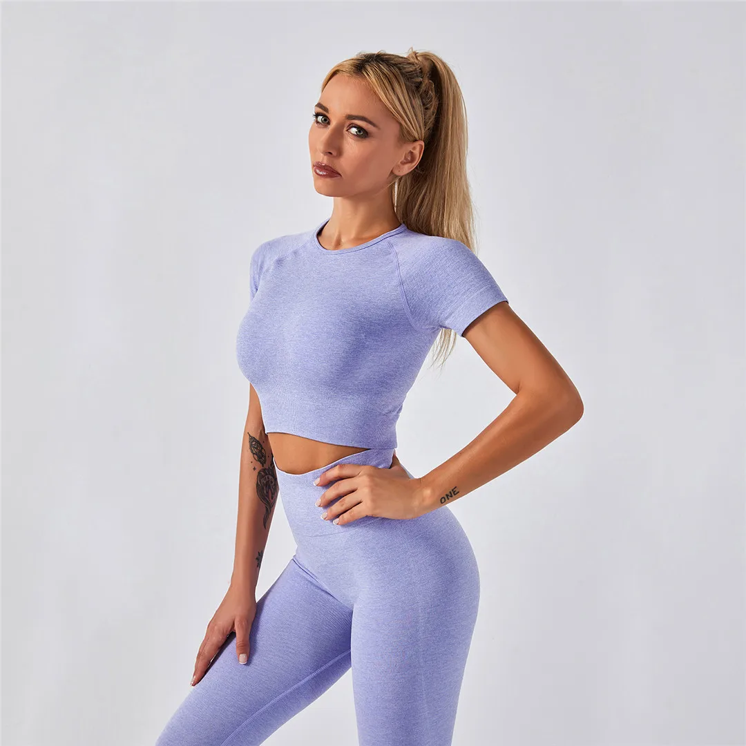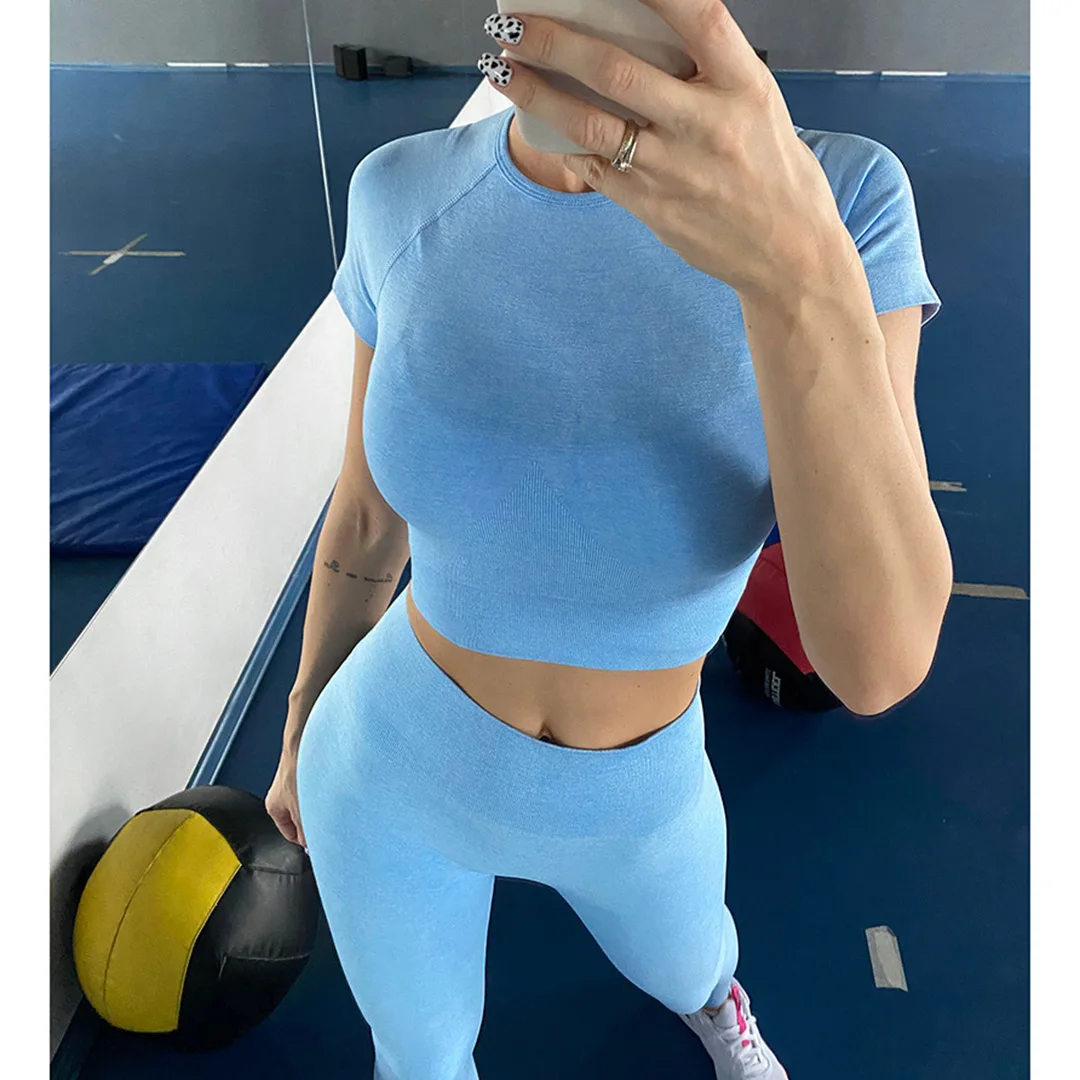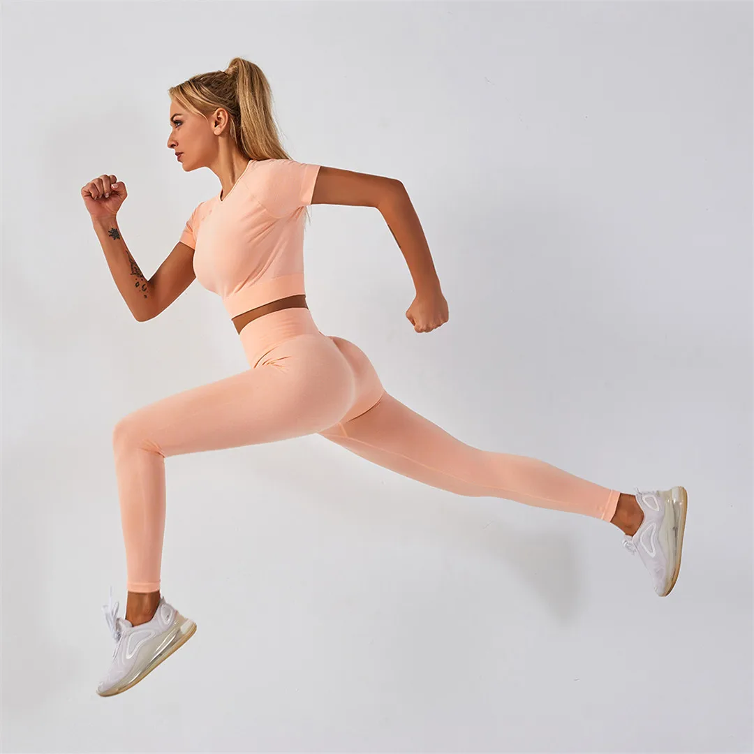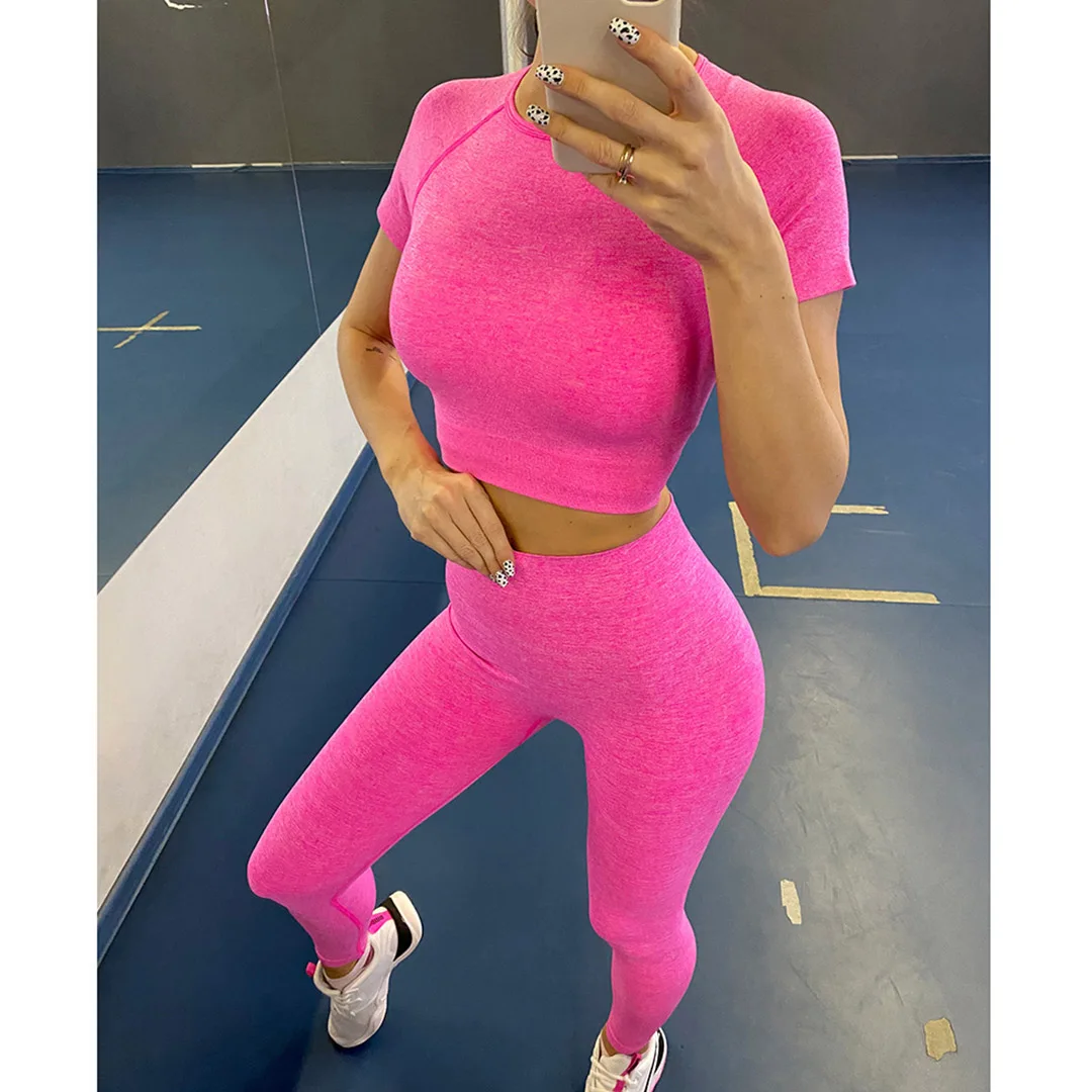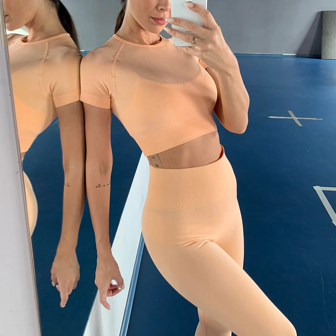 Спортивная одежда, комплект для йоги из 2 предметов, женский костюм для йоги, леггинсы с коротким рукавом и высокой талией, быстросохнущая одежда для йоги, энергетический костюм для фитнеса A012