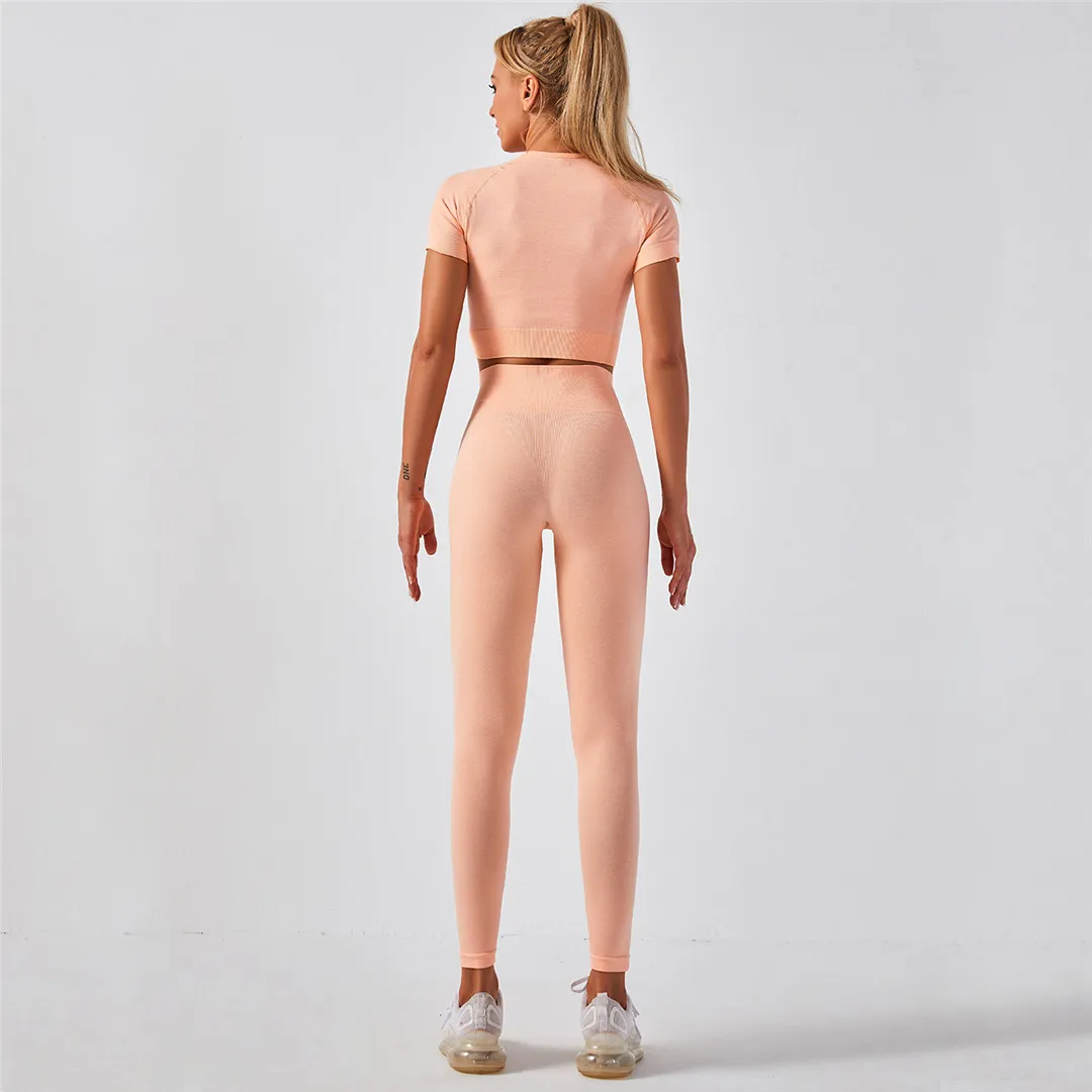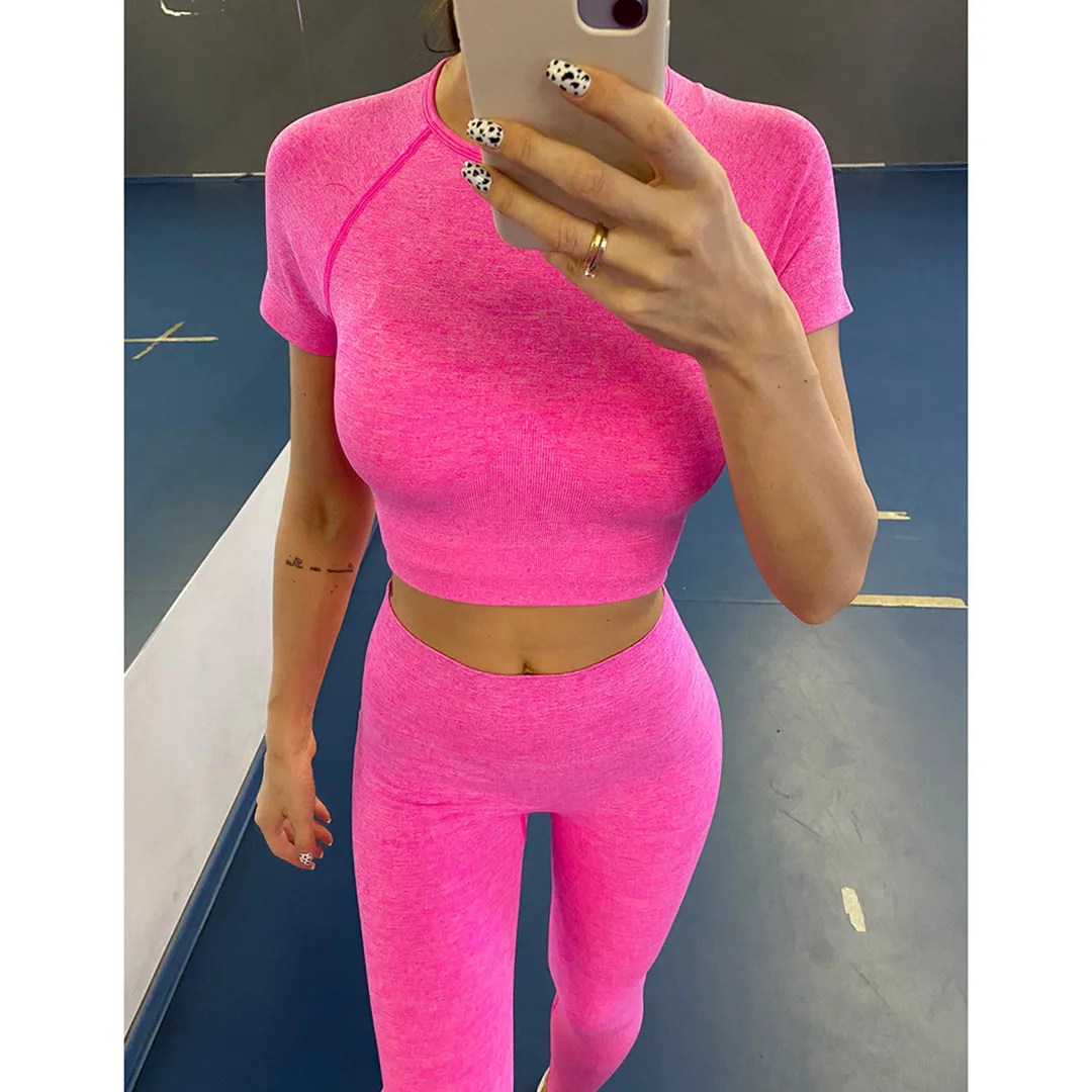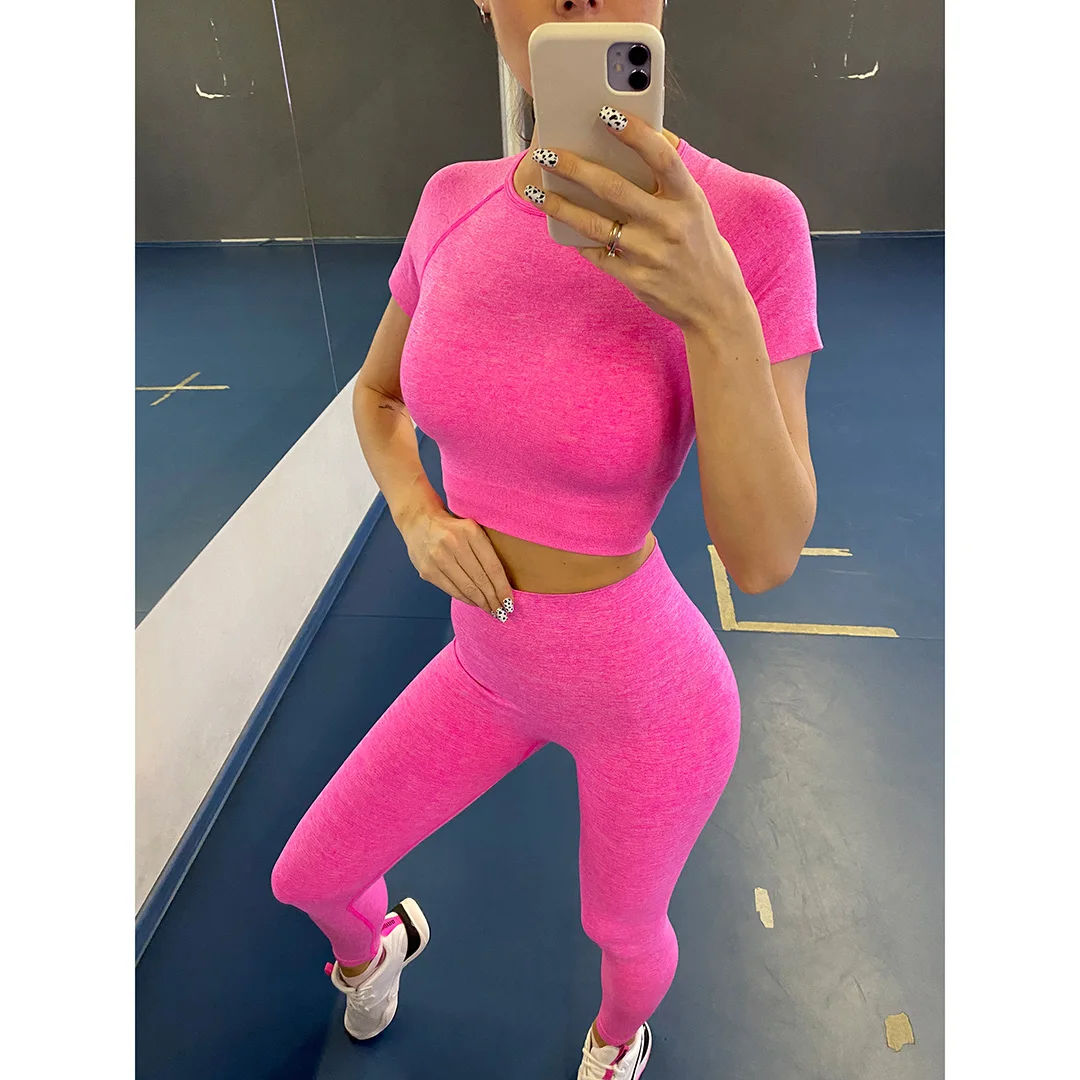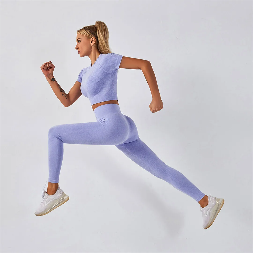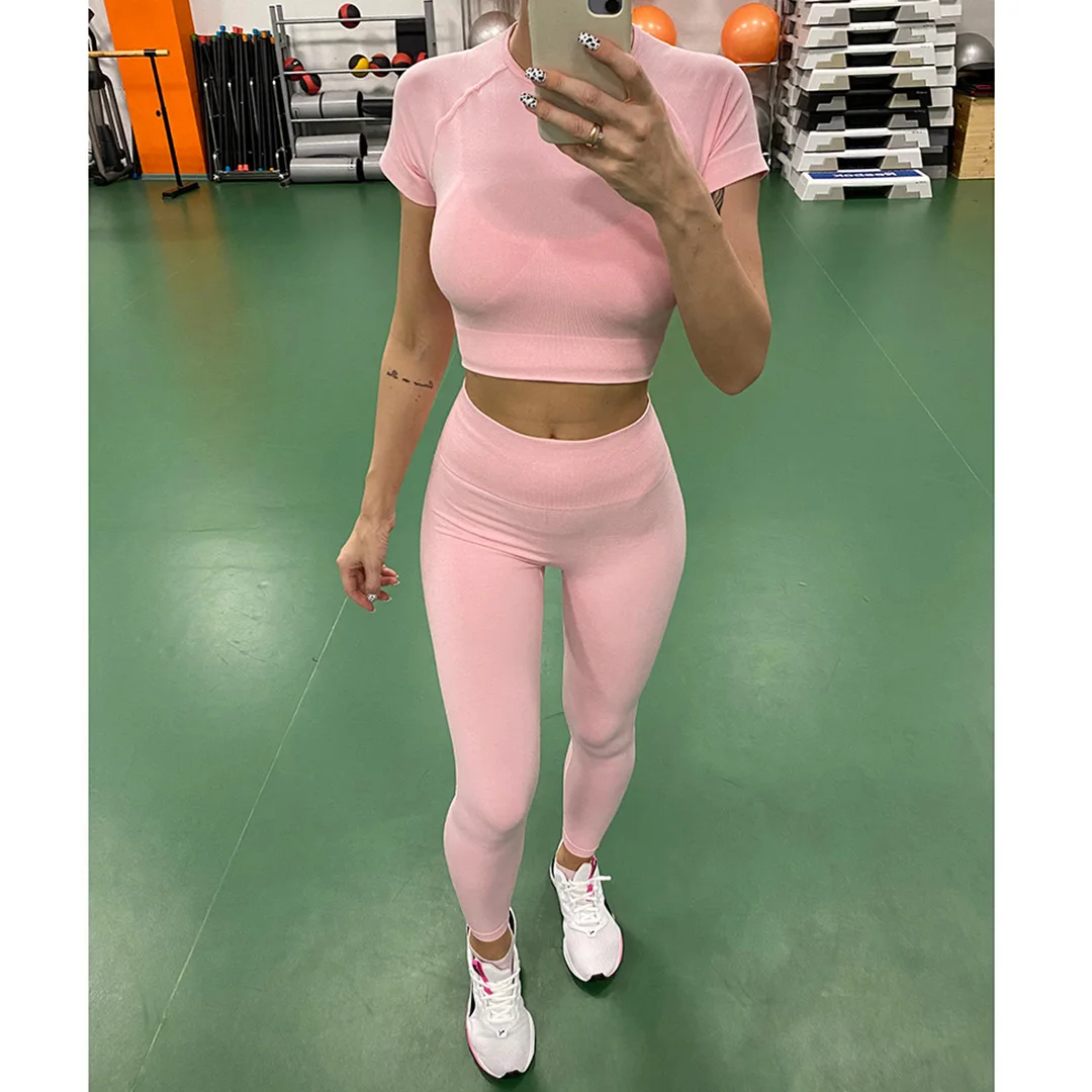 Спортивная одежда, комплект для йоги из 2 предметов, женский костюм для йоги, леггинсы с коротким рукавом и высокой талией, быстросохнущая одежда для йоги, энергетический костюм для фитнеса A012
