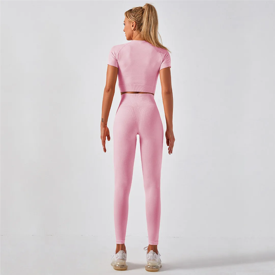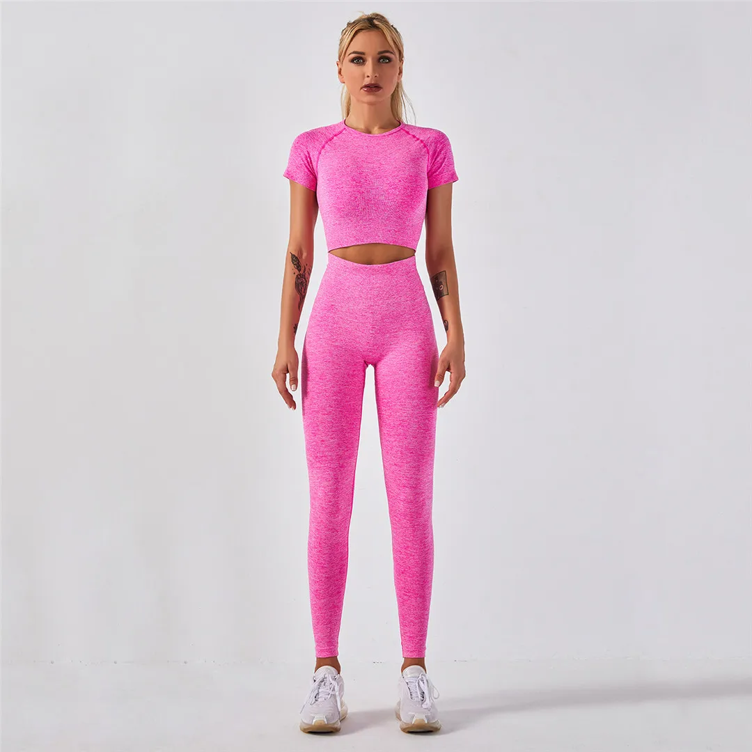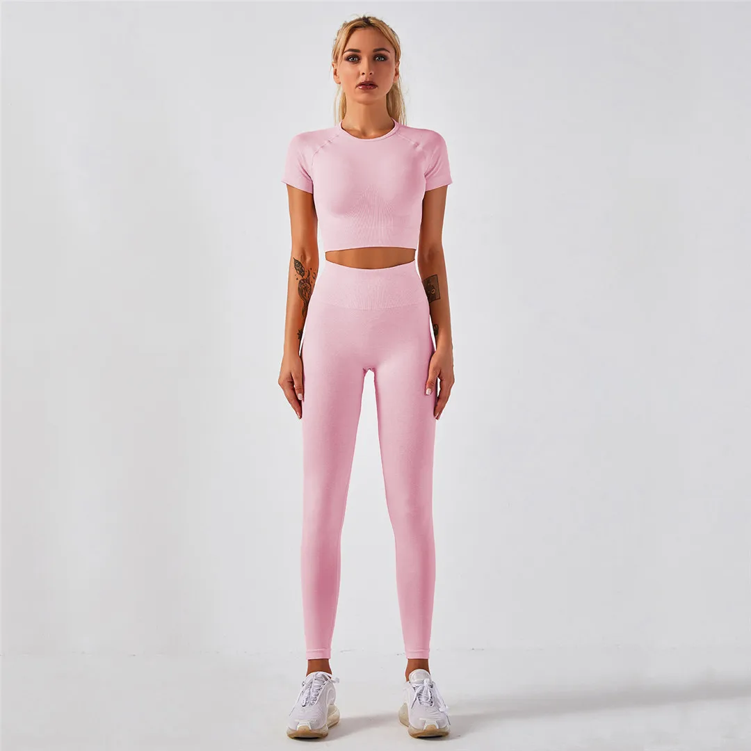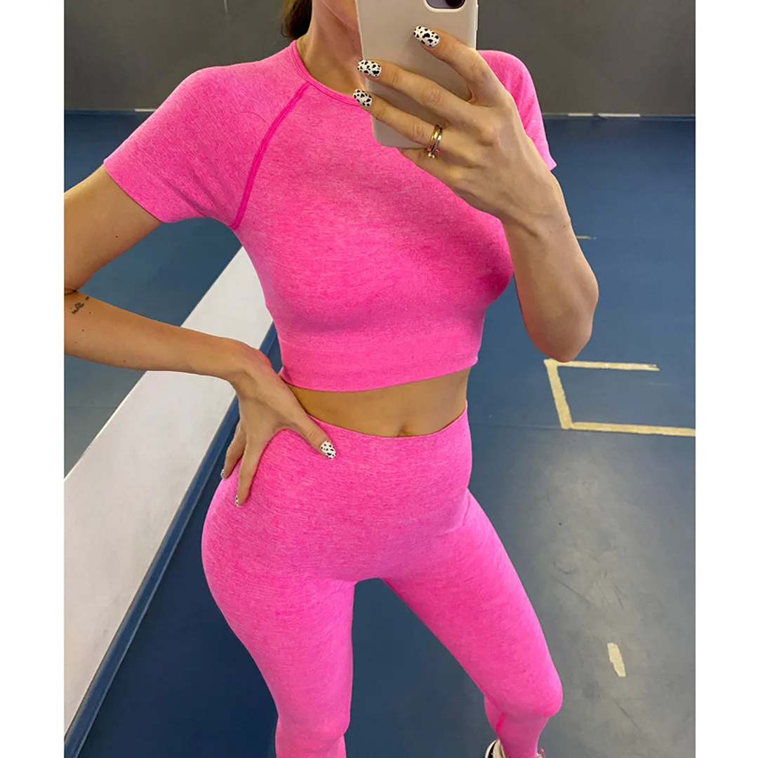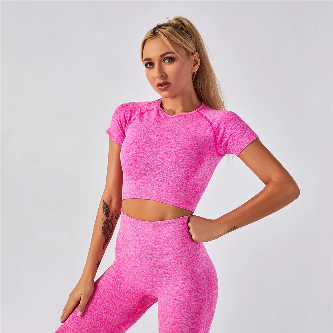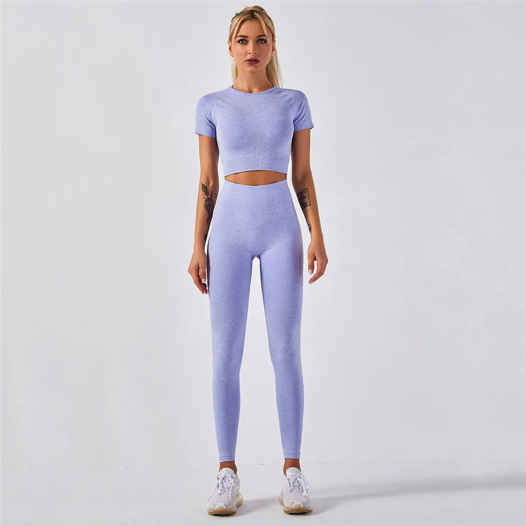 Спортивная одежда, комплект для йоги из 2 предметов, женский костюм для йоги, леггинсы с коротким рукавом и высокой талией, быстросохнущая одежда для йоги, энергетический костюм для фитнеса A012