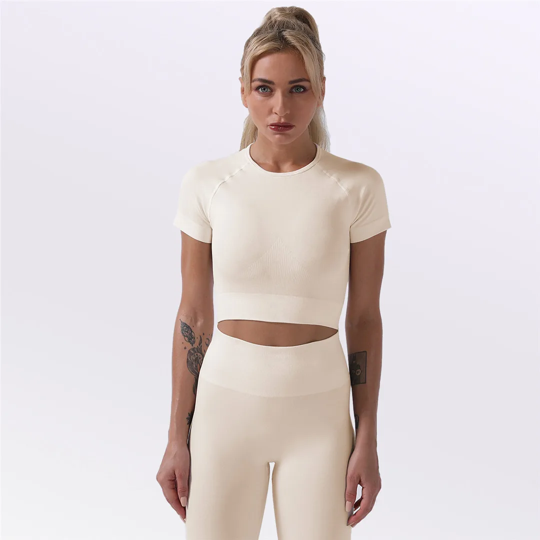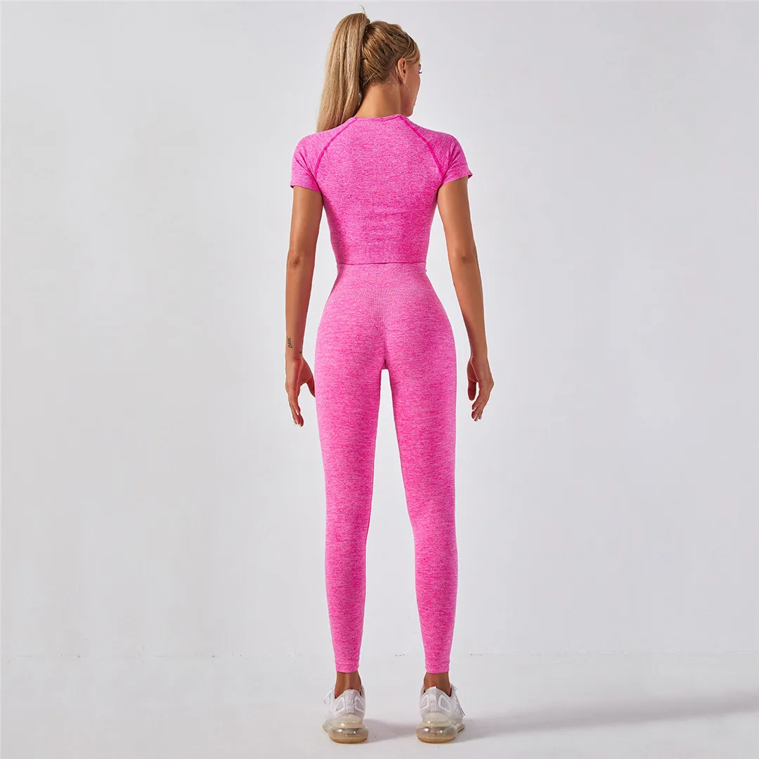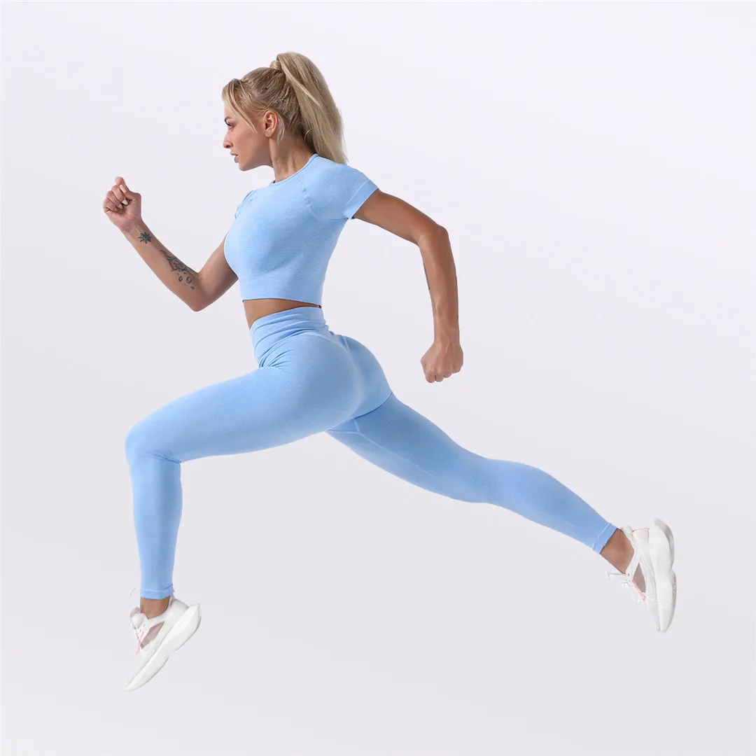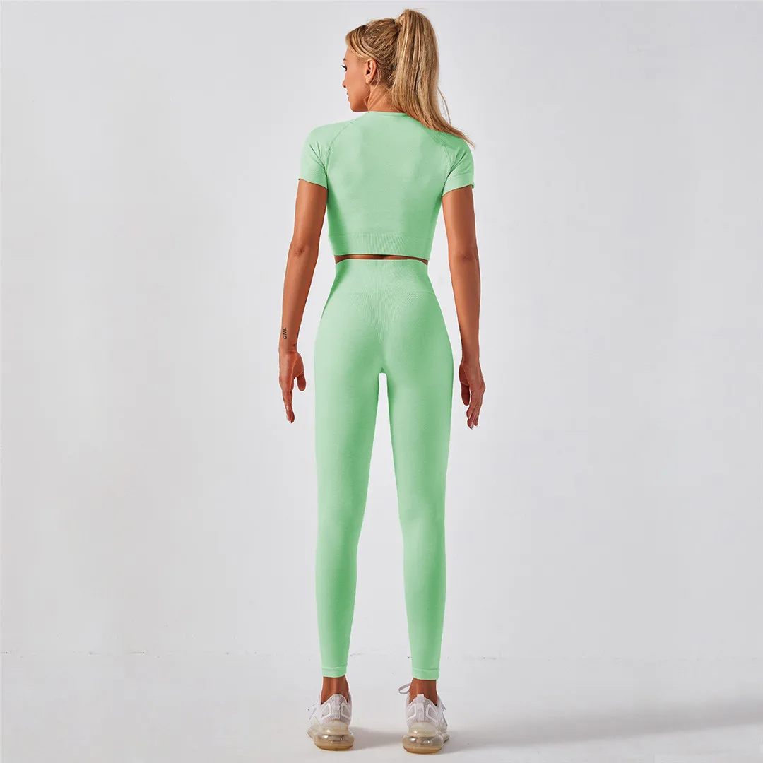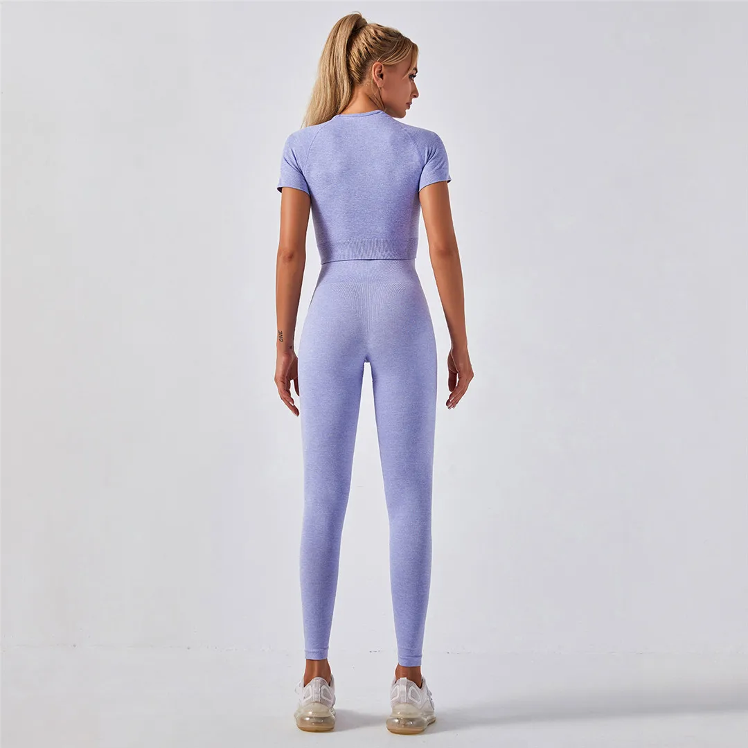 Спортивная одежда, комплект для йоги из 2 предметов, женский костюм для йоги, леггинсы с коротким рукавом и высокой талией, быстросохнущая одежда для йоги, энергетический костюм для фитнеса A012