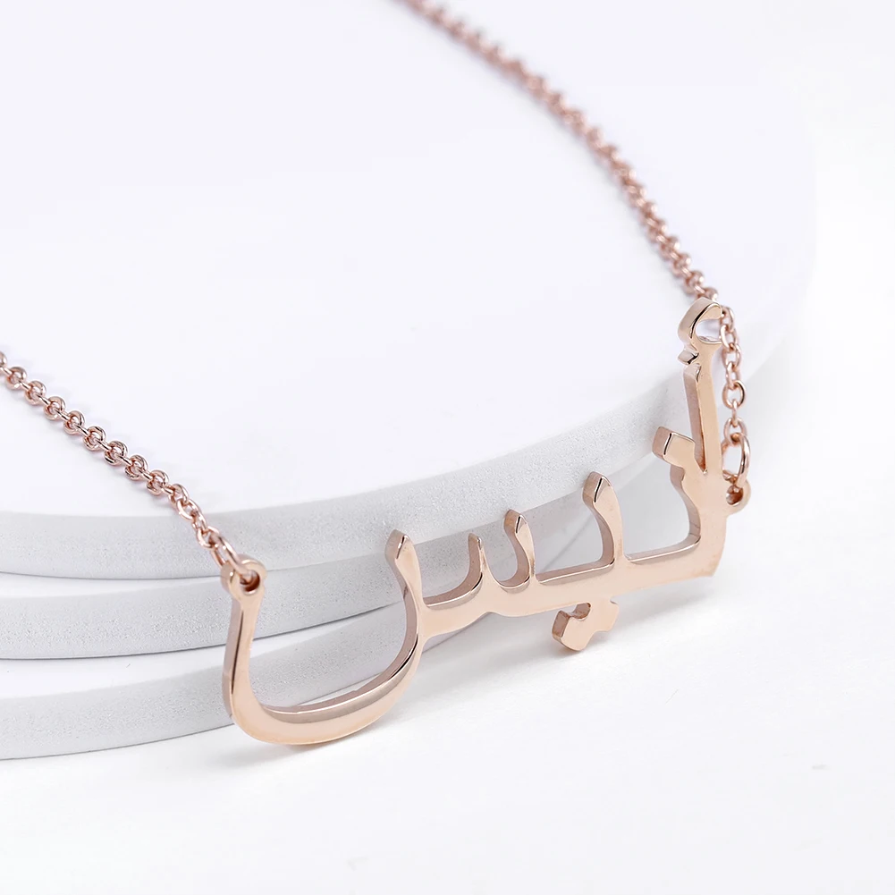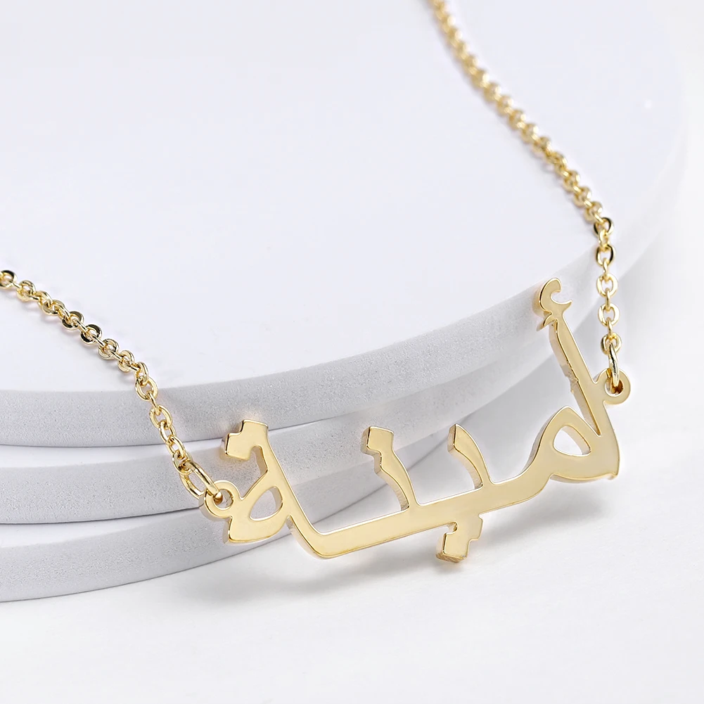 Ожерелье с арабским именем под заказ, персонализированное Золотое ожерелье из нержавеющей стали в английском стиле, ювелирное ожерелье с подвеской для женщин и мужчин, подарки