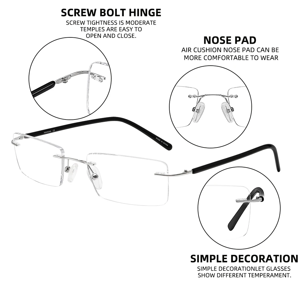 Мужские очки FONHCOO, в оправе без оправы, с защитой от синего света, для офиса, очки для компьютерных игр