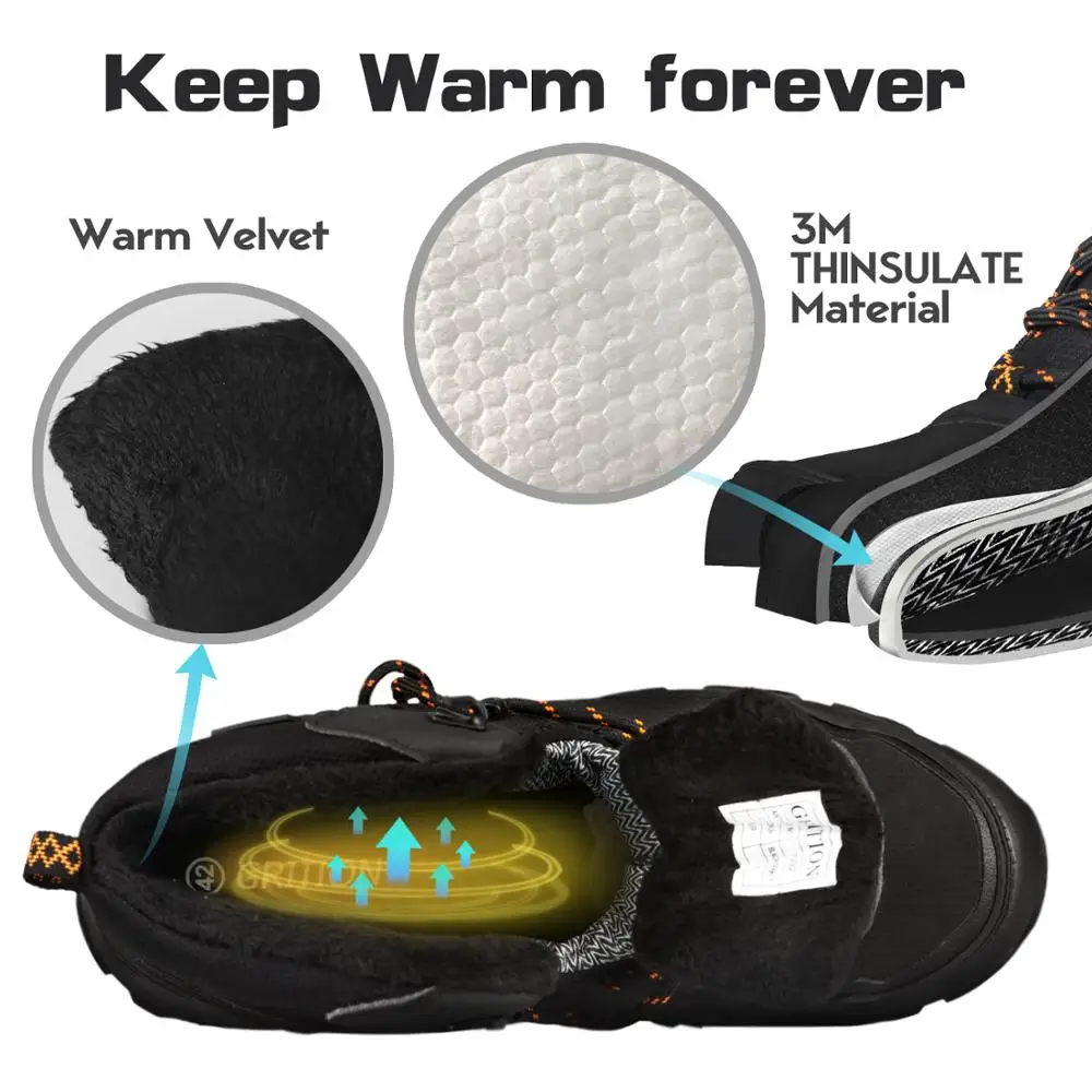 Мужские походные ботинки GRITION, повседневная Водонепроницаемая зимняя рабочая обувь для снега, дизайнерские Военные кроссовки на платформе, армейские плюшевые теплые стальные, 2020