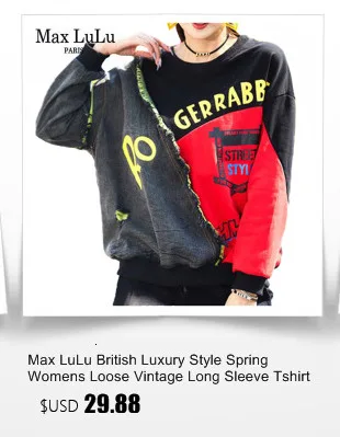 Футболка Max LuLu женская оверсайз с длинным рукавом, модный топ в Корейском стиле, винтажная Повседневная рубашка, уличная одежда, на осень