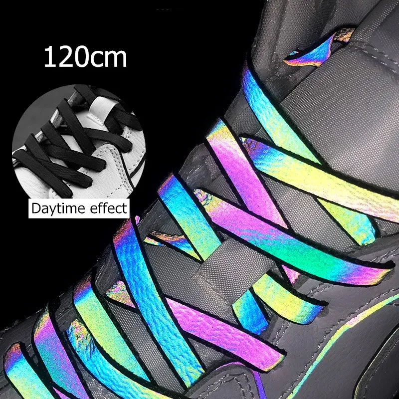 СветоотражаПредупреждение шнурки отражающие для взрослых, со светоотражающим лазером и сменой цвета, длина 120 см