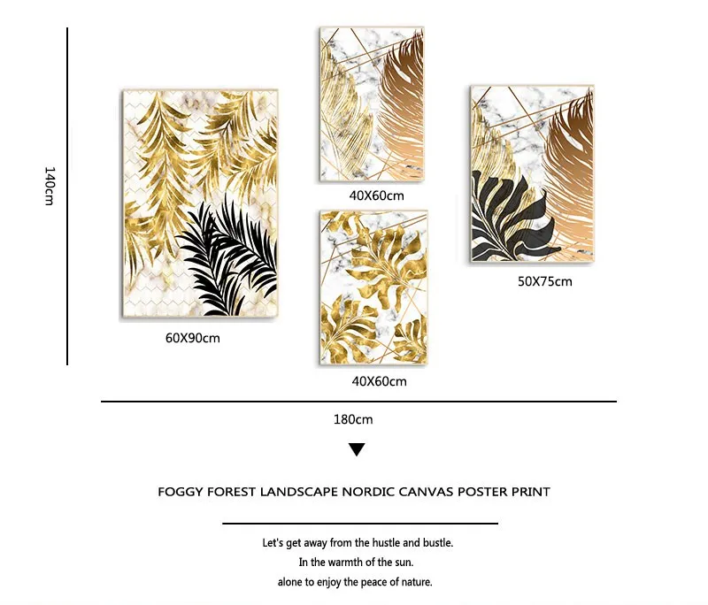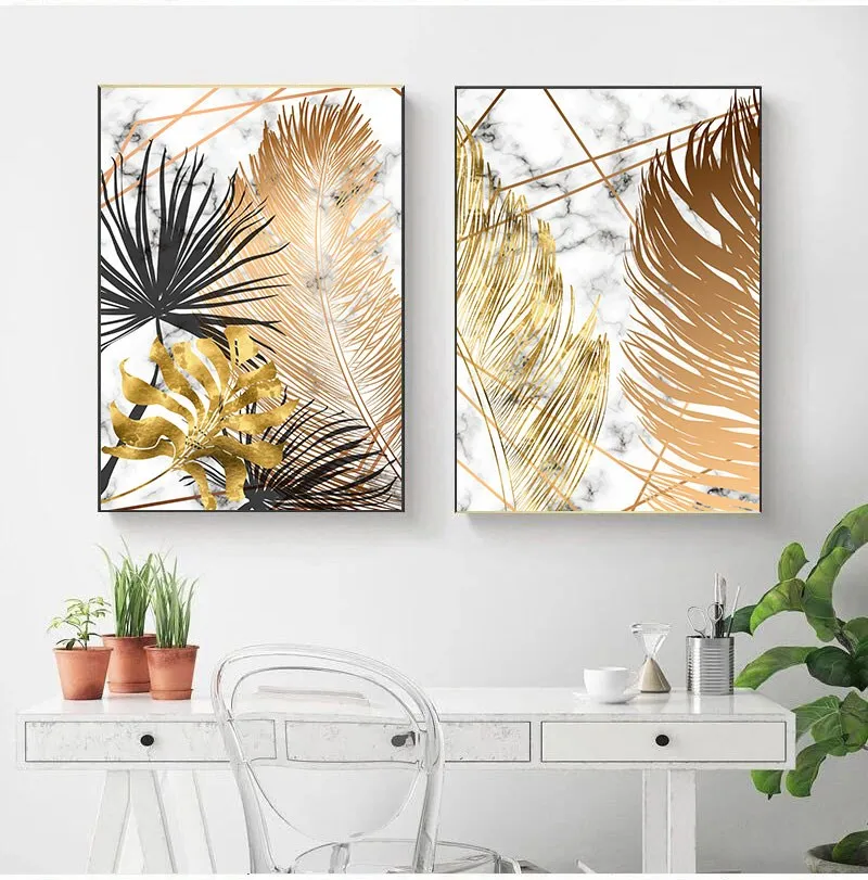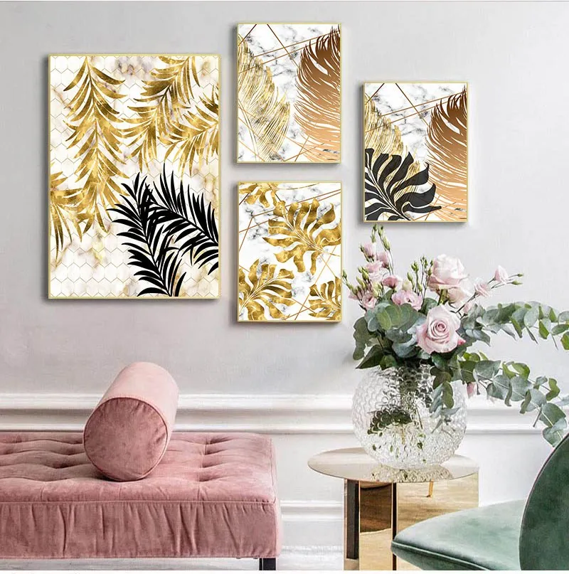 Постеры и печатные картины на холсте с изображением золотых листьев в скандинавском стиле для гостиной, спальни, столовой, современного декора