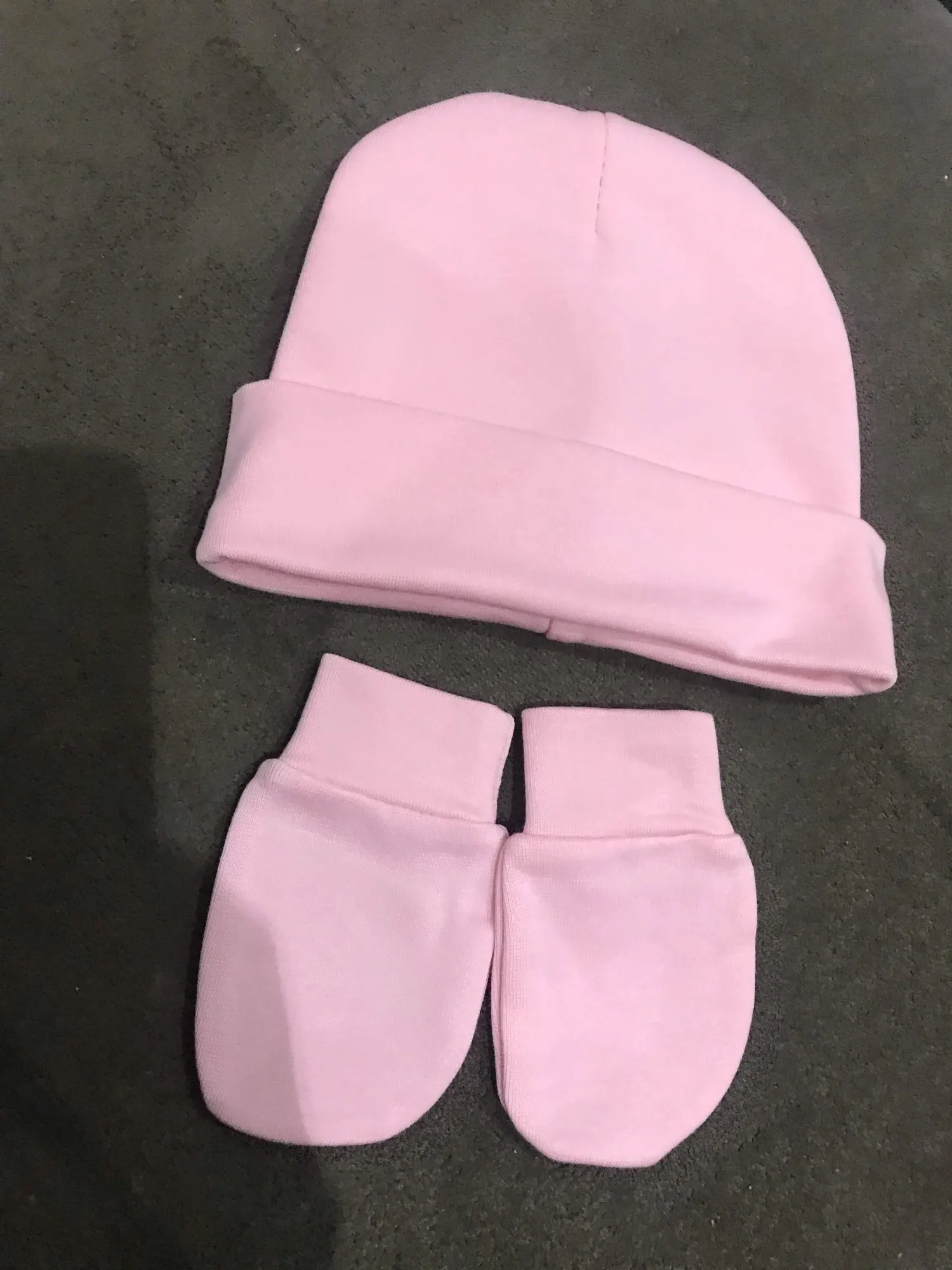 Осенне-зимняя хлопковая шапка для маленьких мальчиков и девочек; Комплект из 2 предметов; Однотонная шапка унисекс для новорожденных; Младенческая шапочка; Перчатки