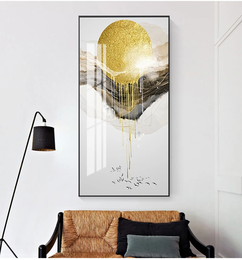 Абстрактная картина золотого солнца на холсте, плакаты с большим рисунком, модные картины для гостиной, Скандинавская картина на стену, декоративные картины