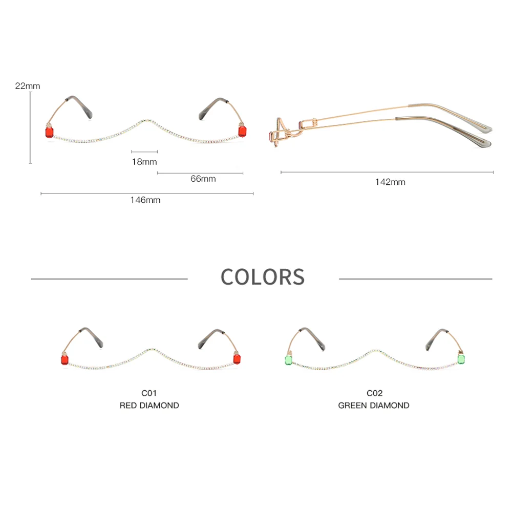 YAMEIZE стразы, оправа для очков, Женские оправы для очков с бриллиантами для женщин, металлическая оправа без оправы, искусственные солнцезащитные очки