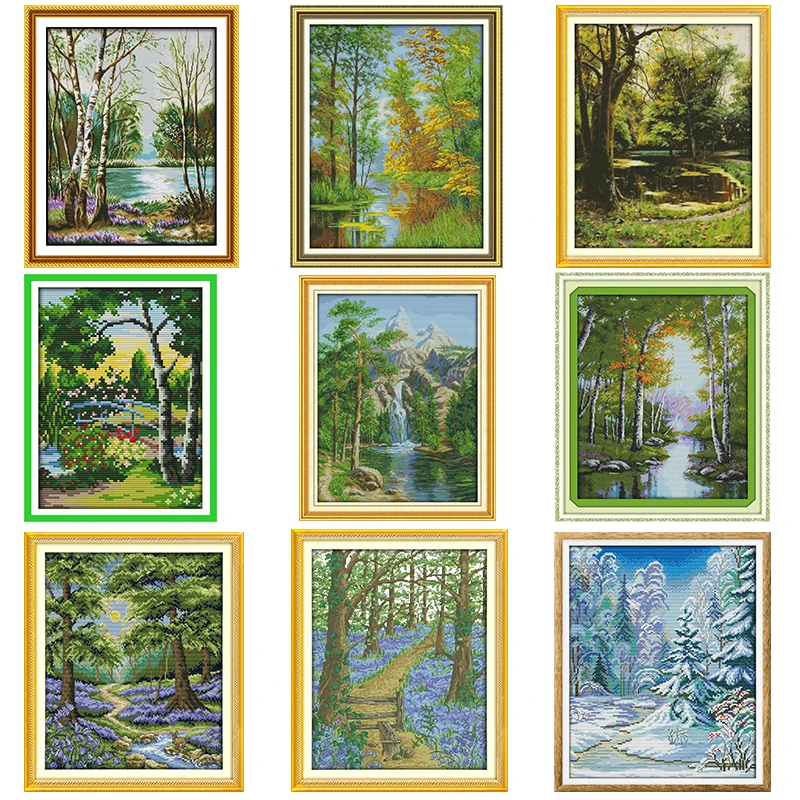 Наборы для вышивки крестиком, с принтом на пружине, до берега озера...