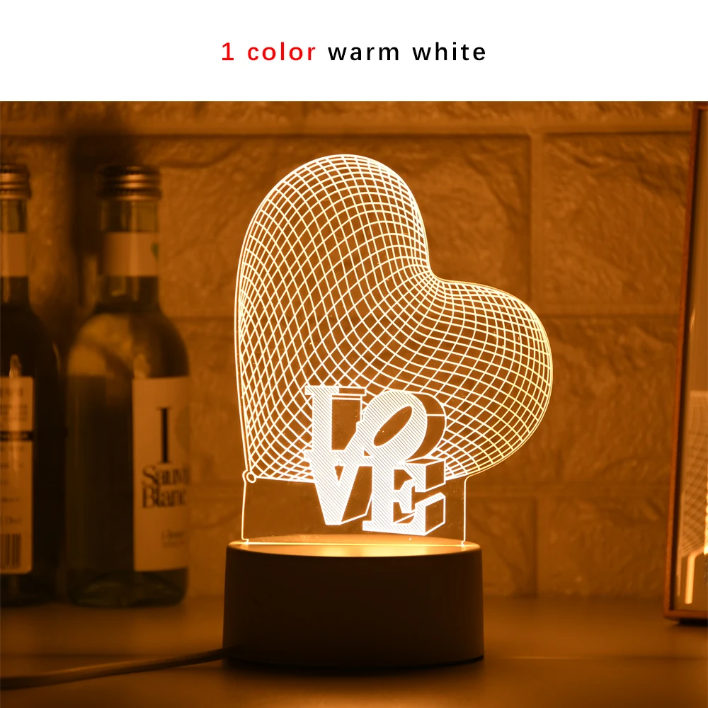 3D лампа в виде одного сердца, креативный Ночной светильник 3 цветов, новая иллюзия, ночная лампа, иллюзия, настольная лампа для дома, светильник