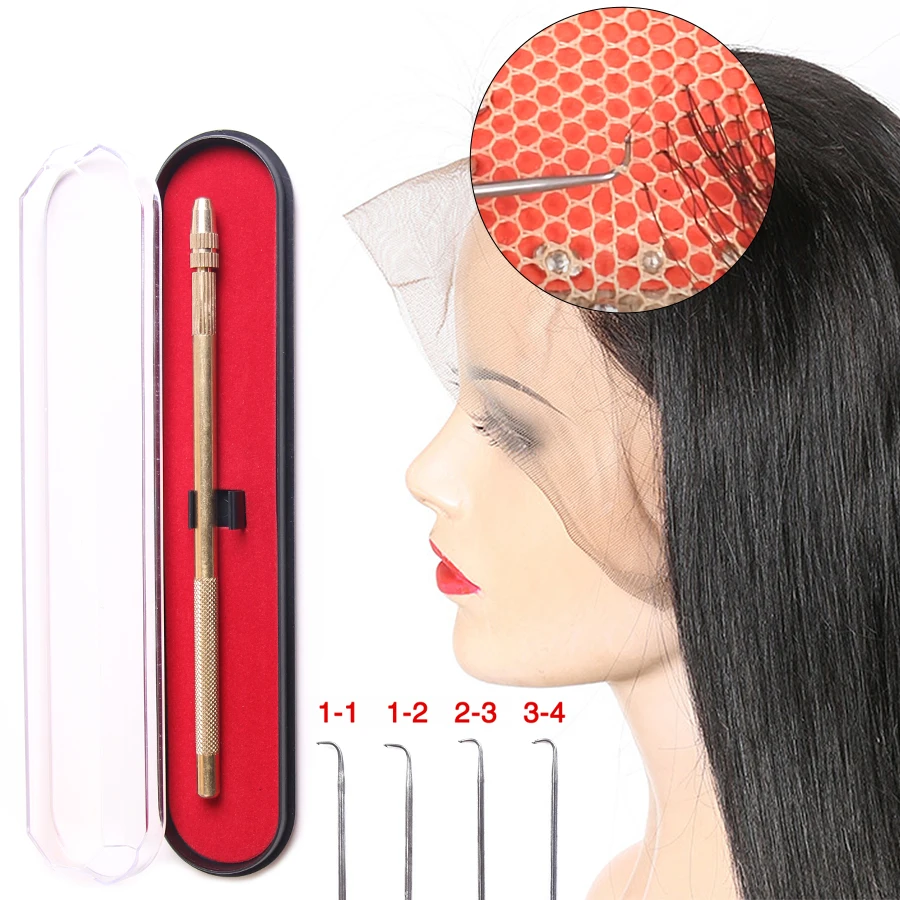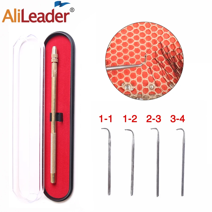 Новинка, вентилирующая игла Alileader, один держатель и 4 иглы разных размеров для вязания париков, медного плетения волос, кружевные инструменты для париков
