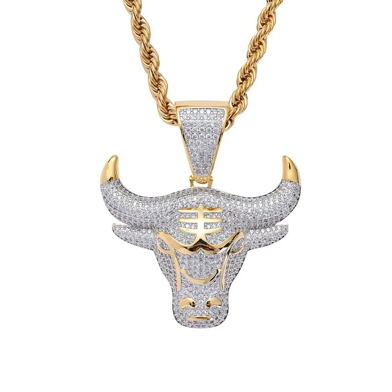 Мужской кулон в стиле хип-хоп с головой быка, кулон медный + AAA ку...