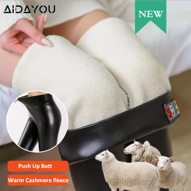Кашемировые брюки для женщин, Толстые Леггинсы, штаны из искусственной кожи, зимние леггинсы из искусственной кожи размера плюс, высокая талия, хорошо тянутся, ouc607