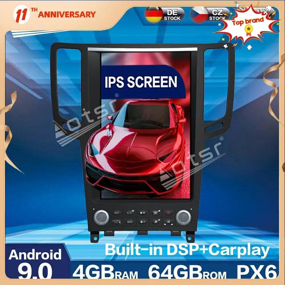 Автомагнитола для Infiniti G37, G25, G35, мультимедийный проигрыватель Tesla PX6, 4 + 64 ГБ, HD, Автомобильная GPS-навигация, DSP, carplay, Wi-Fi, BT, 2008 +