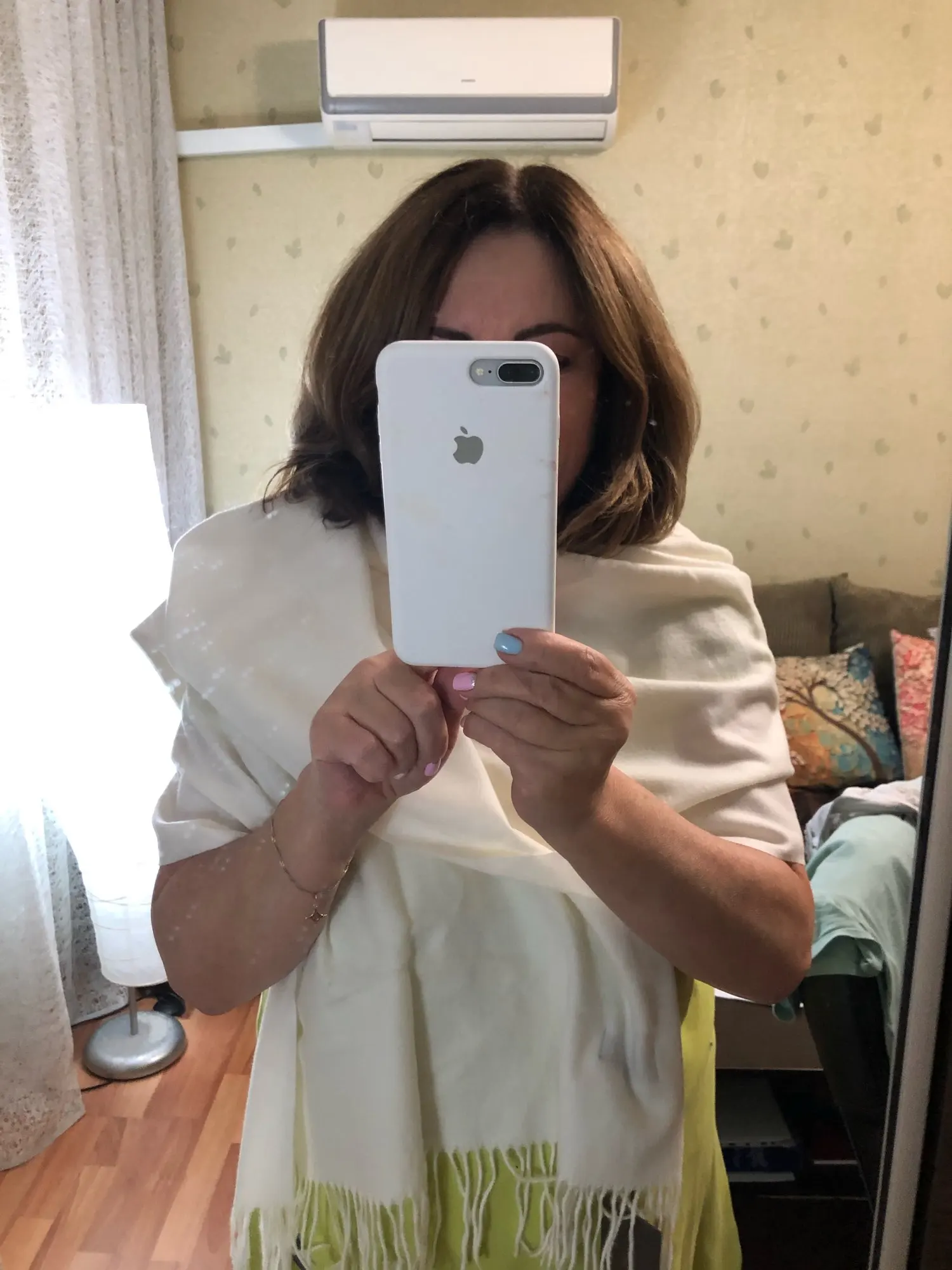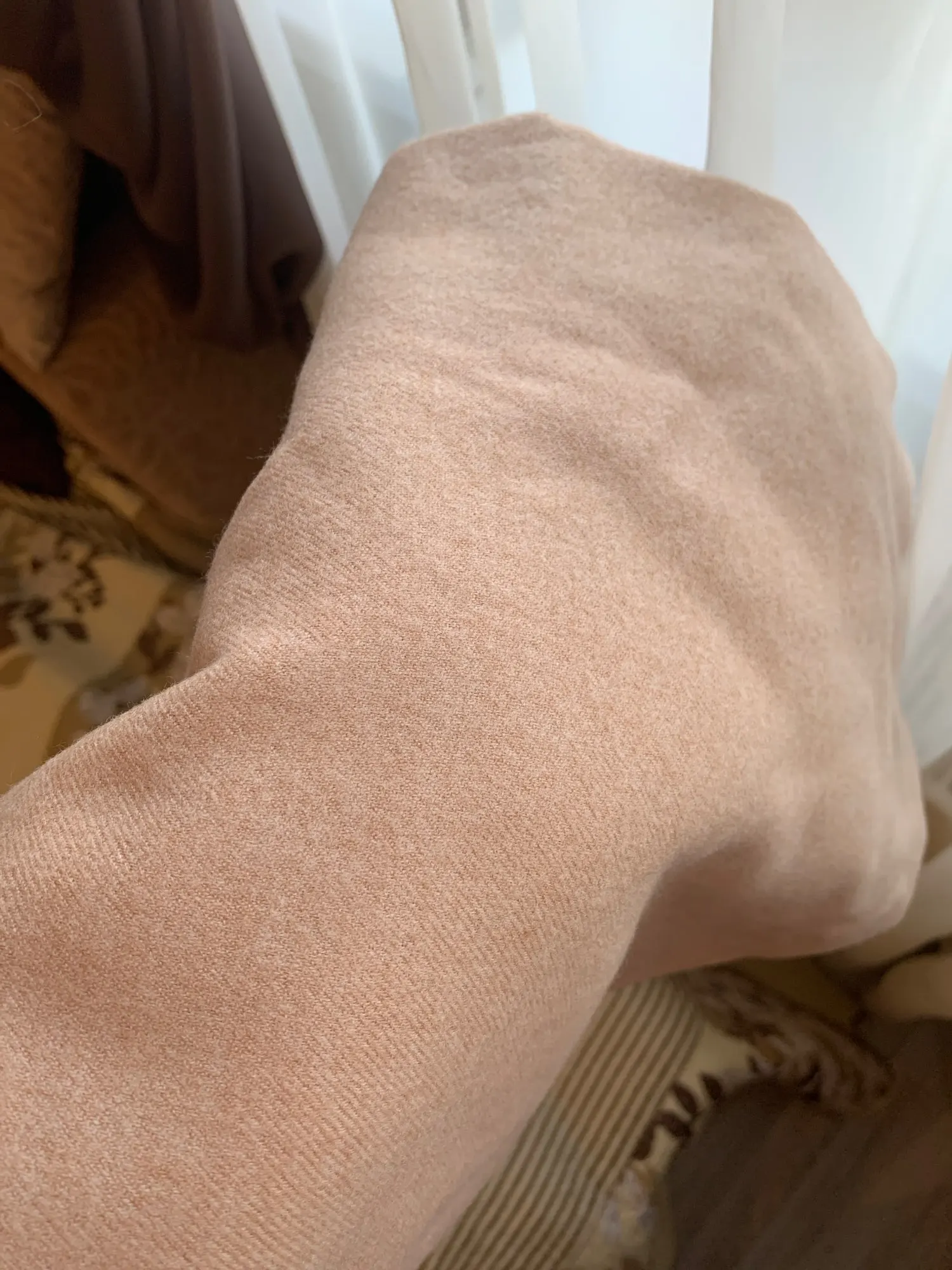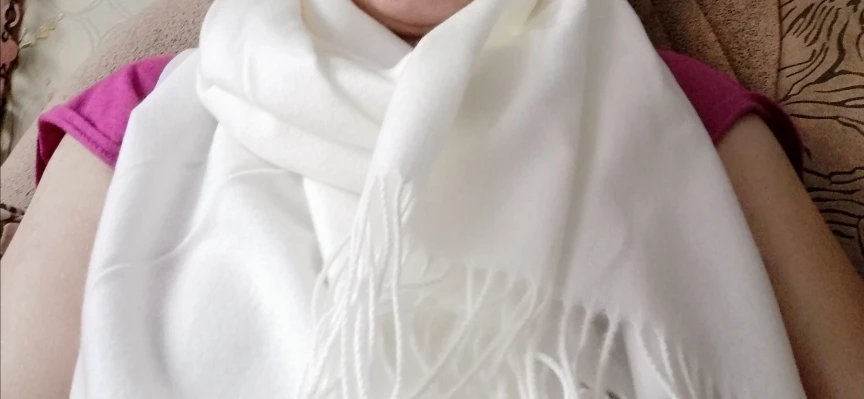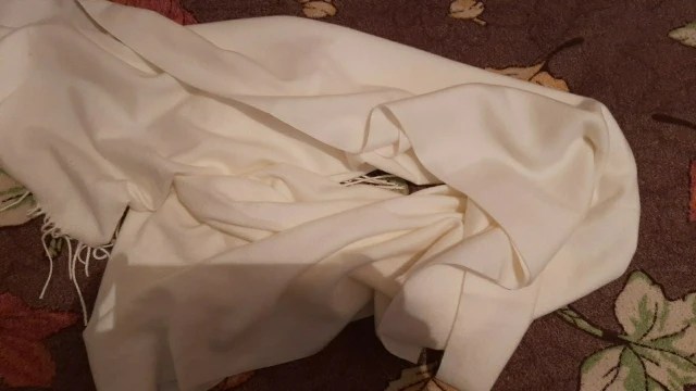 Шарф супер! Очень мягкий, приятный на ощупь. Молочный цвет. Доставка быстрая!