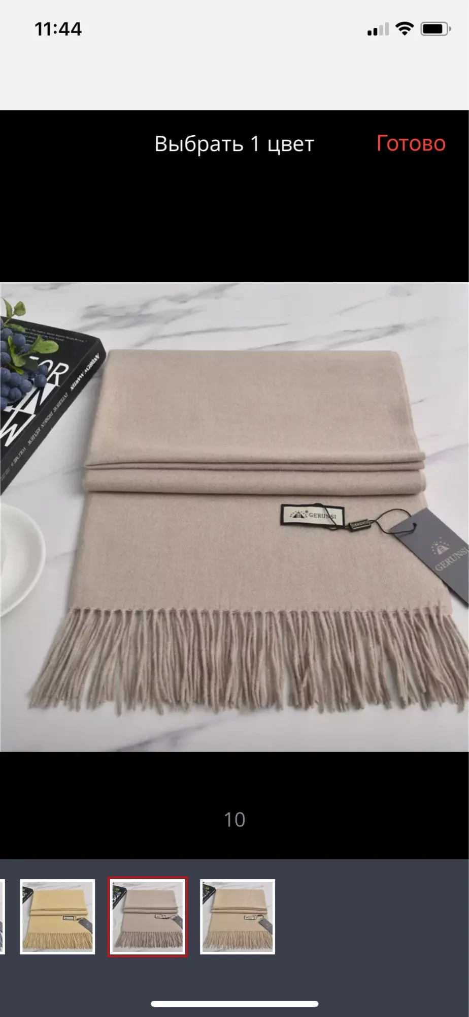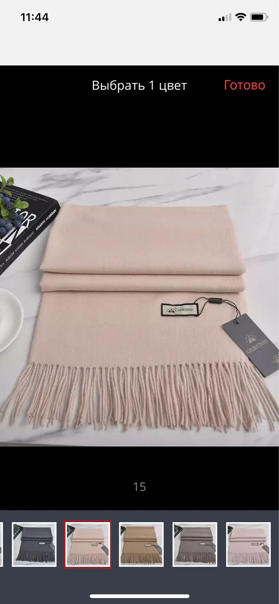 Шарф дошёл всего за 15 дней! Очень быстро, особенно в период 11.11. Хороший продукт, мягкий, приятный на ощупь, не уверена, что это реальный кашемир. Цвет на фото чуть-чуть не совпадает, но так все отлично!