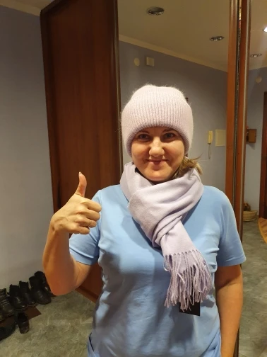 Тёплый приятный шарф, брала комплектом к фиолетовой шапке этого же продавца, очень довольна! Спасибо!!! Было бы здорово к каждой шапке написать какой подходит шарф,а то выбирала только по отзывам!