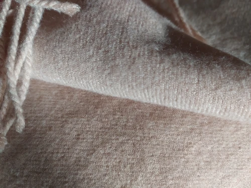 Очень мягкий и приятный, думаю натуральный кашемир как и заявлено