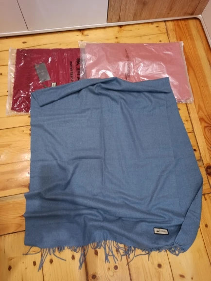 Bardzo miękkie szaliki, miłe w dotyku, nie drapią szyi. Ciepłe. Kupiłam niebieski, fioletowy i ecru. Są oczywiście ze sztucznego tworzywa, ale warte zakupu.Wełna, nawet ta najdelikatniejsza typu pashmina jednak drapie w szyję, a te szaliki nie! Dziękuję sprzedawcy, polecam ten sklep.