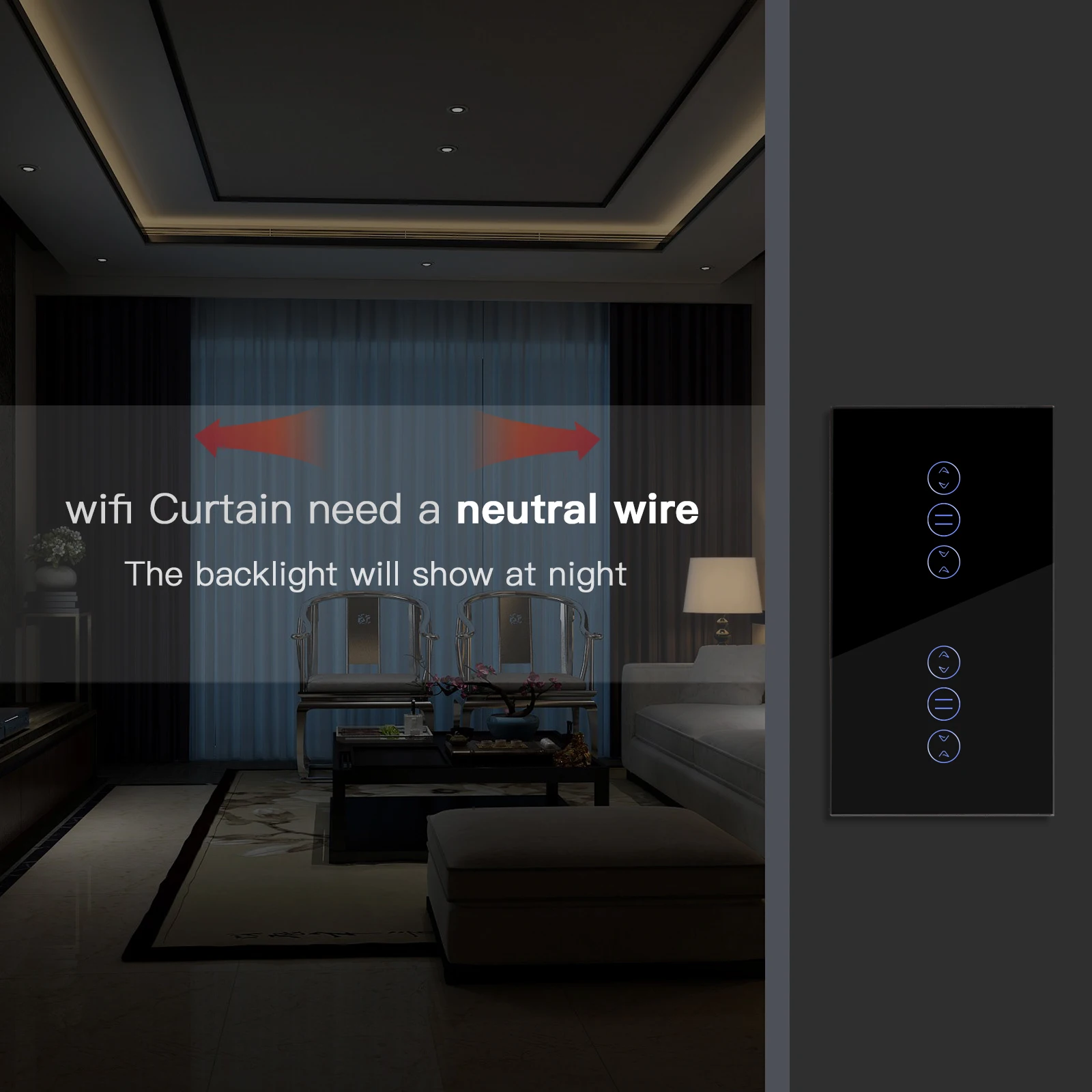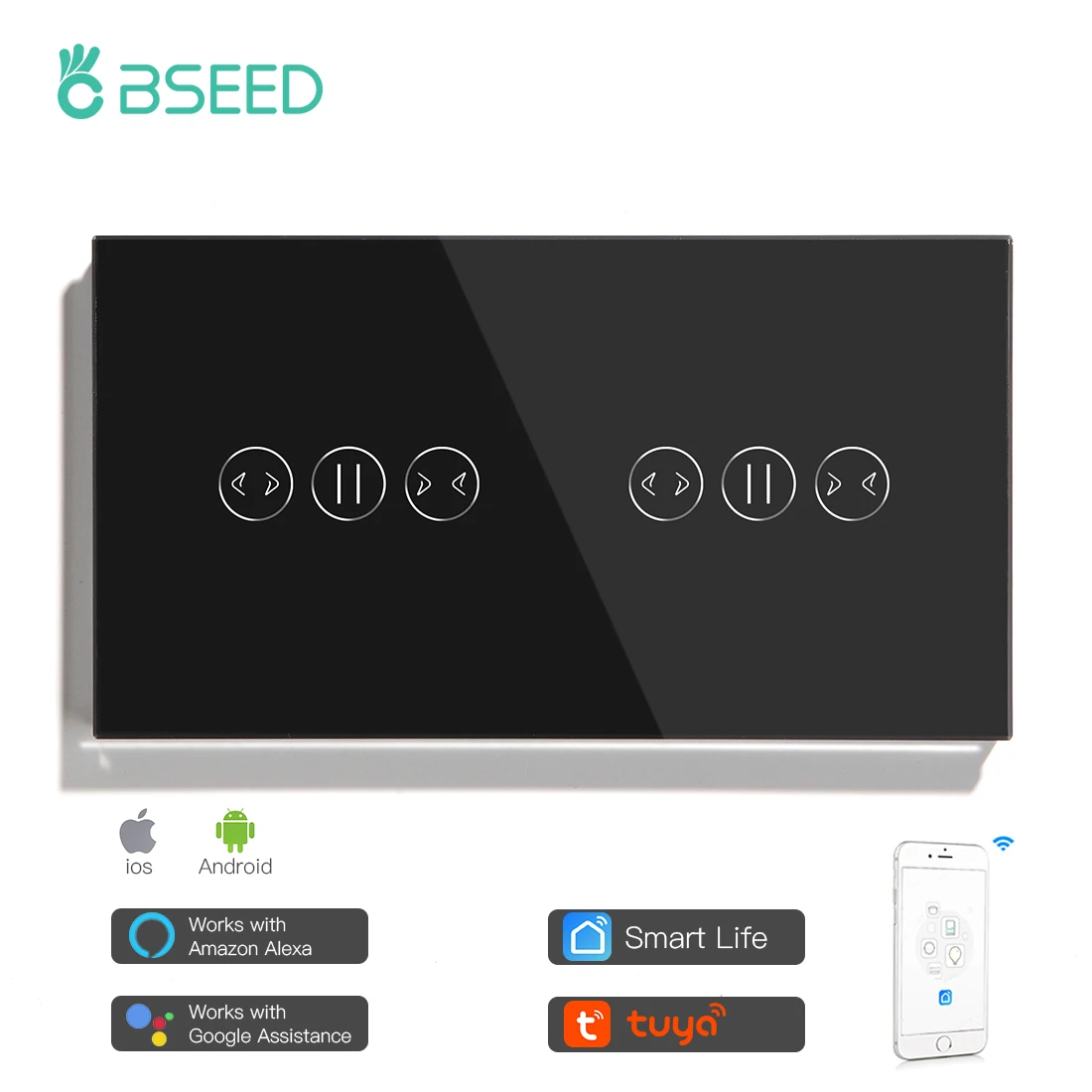 Умный выключатель для штор Bseed с Wi-Fi, двойной сенсорный выключатель с поддержкой Wi-Fi, с поддержкой приложения TUYA Smart Life и Google Alexa