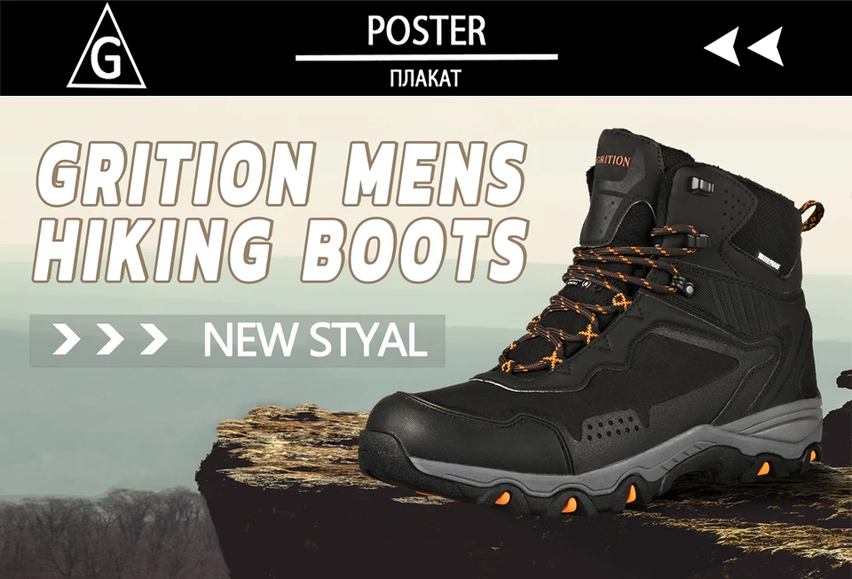 Мужские походные ботинки GRITION, водонепроницаемые зимние походные...