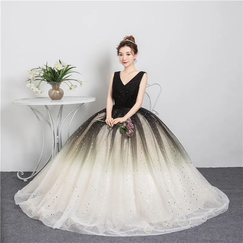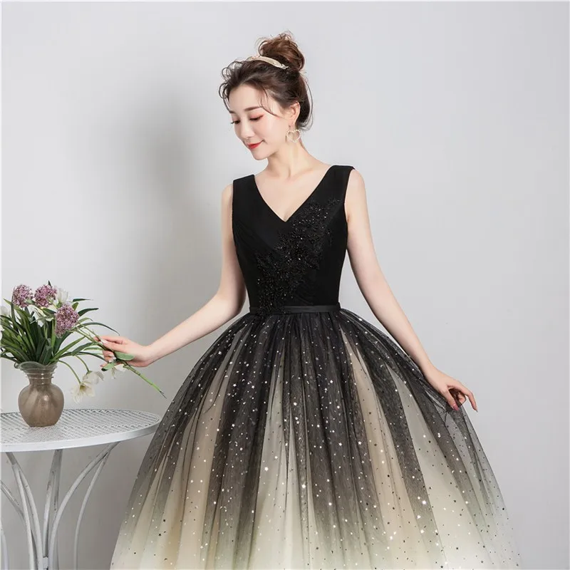 Женское вечернее платье с блестками, черное платье с V-образным вырезом и рукавом, бальное платье для выпускного вечера, 2021