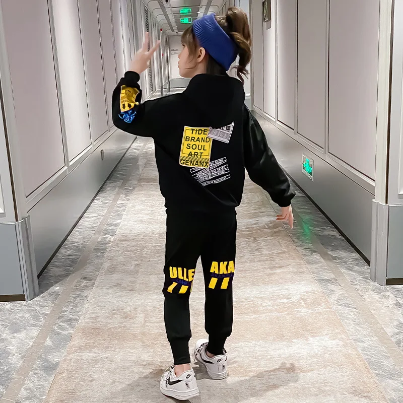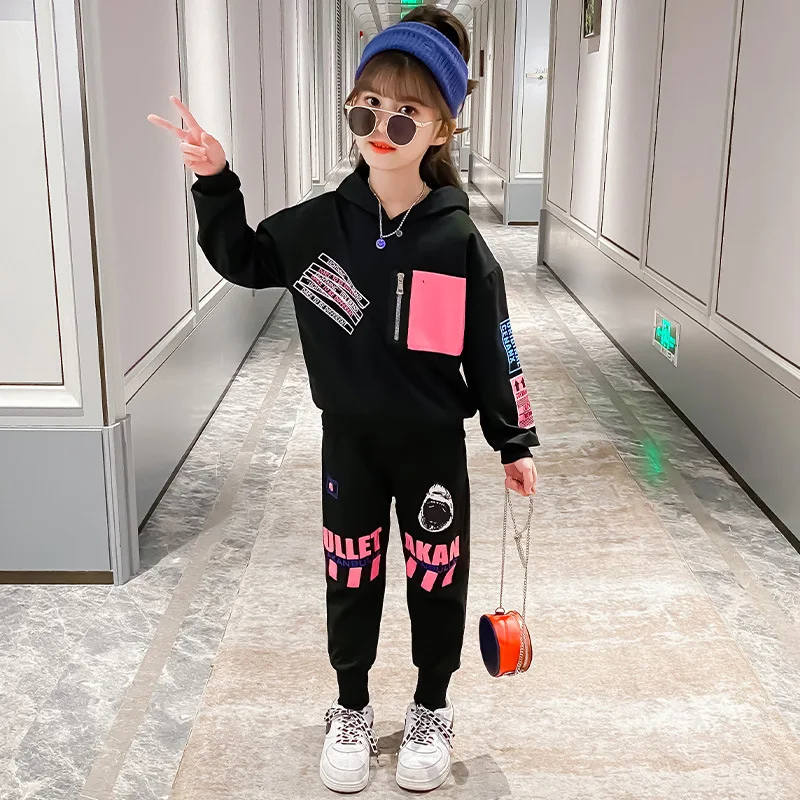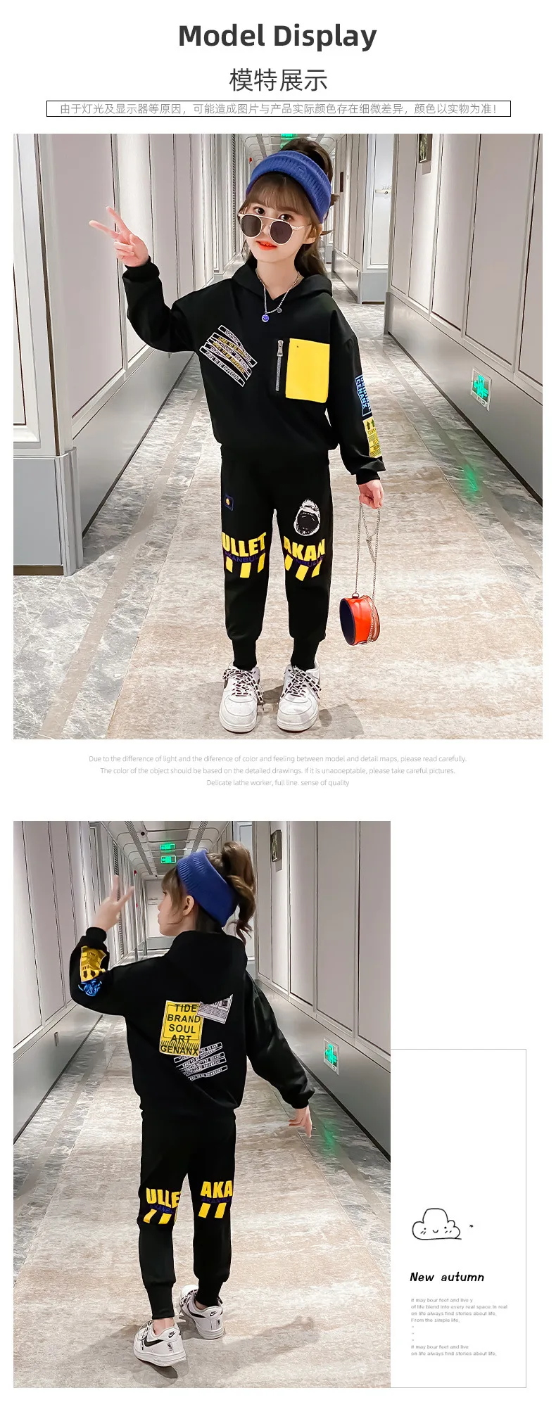 Модный комплект одежды для девочек, спортивный костюм для девочек-подростков на весну и осень 2020, детская одежда из 2 предметов с длинным рукавом и капюшоном, костюмы на 6, 8, 10, 12 лет